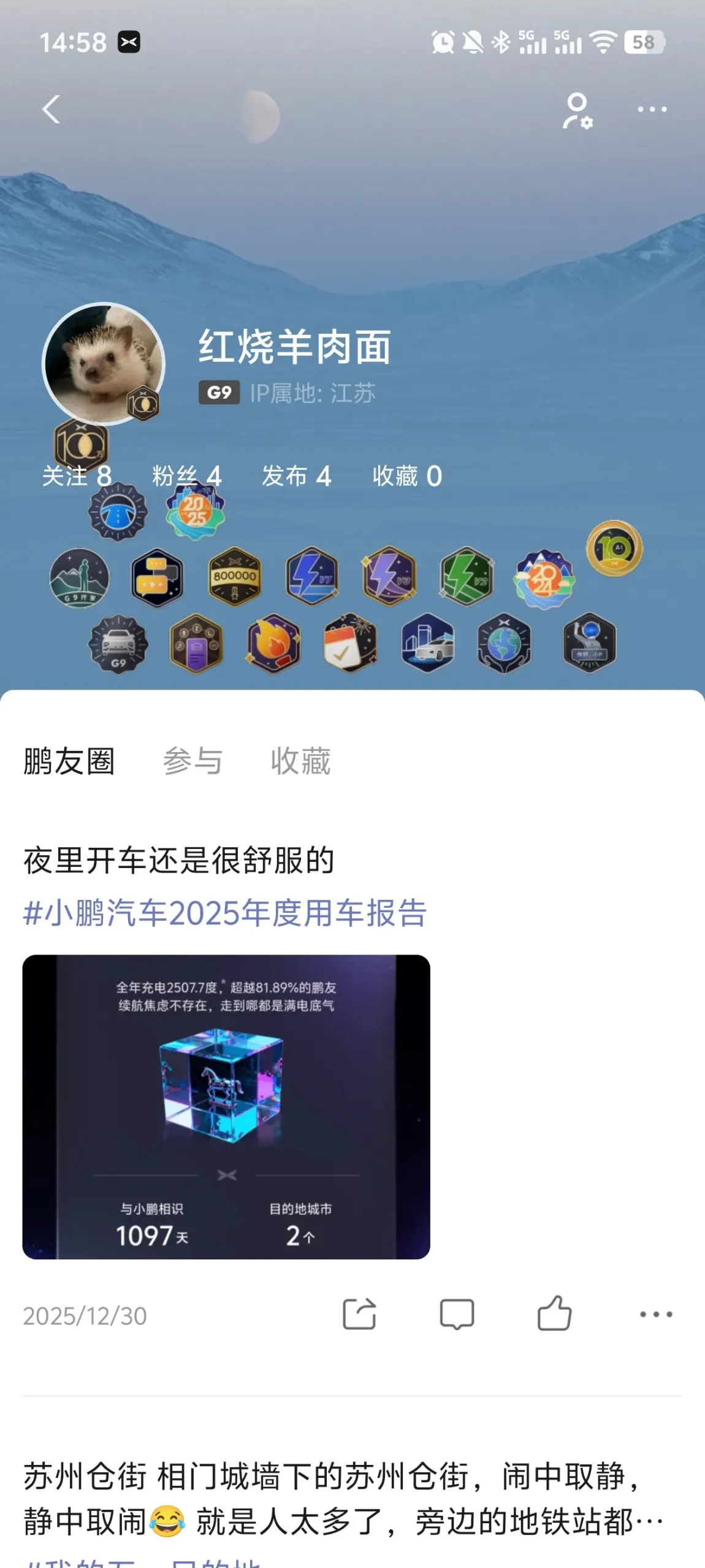 开始以为只有三四个勋章,点开一看有这么多了。最满意的是充电勋章,或者说是对小鹏自营充电站比较满意,速度快,嗖的一下,就又满电出发了。