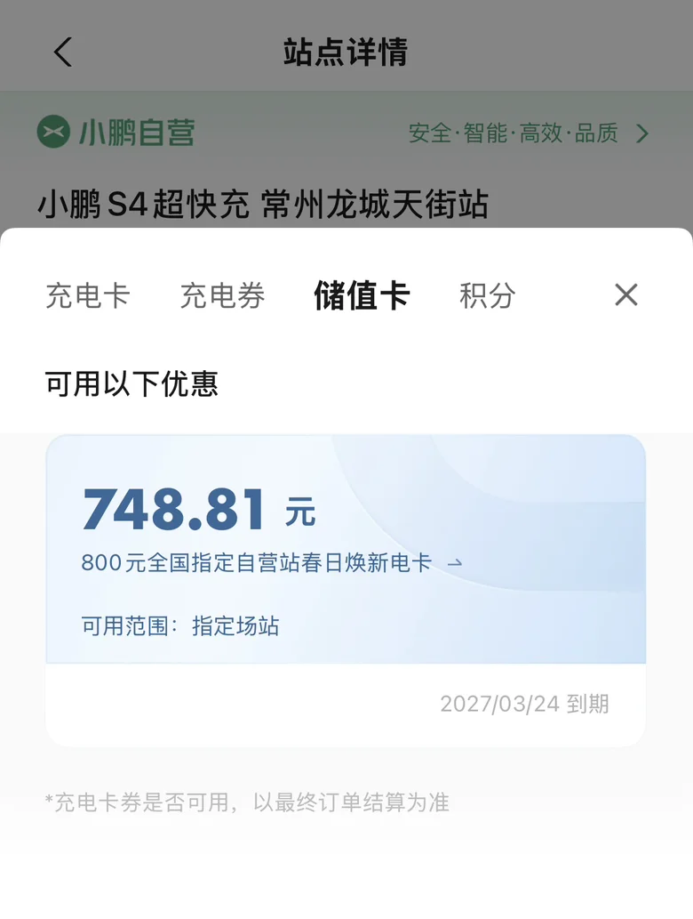 作为小鹏车主的出行刚需,这张春日焕新电卡太香了!800元面额仅需730元,覆盖全国上千家自营充电站,支持全额累计购买,还能叠加服务费折扣,长途出行也能放心补能。