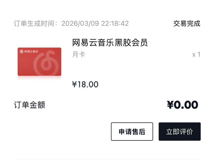 ✅ 月卡周期灵活,用积分兑换无额外门槛,喜欢音乐的鹏友可以长期兑换
