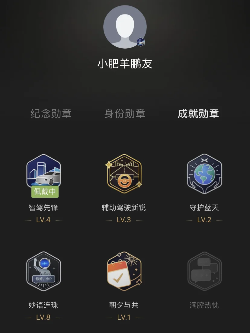 #晒晒我的勋章# 从提车到现在,不知不觉已经收集了11枚小鹏汽车App勋章,每一枚都藏着和小P相伴的专属记忆✨。