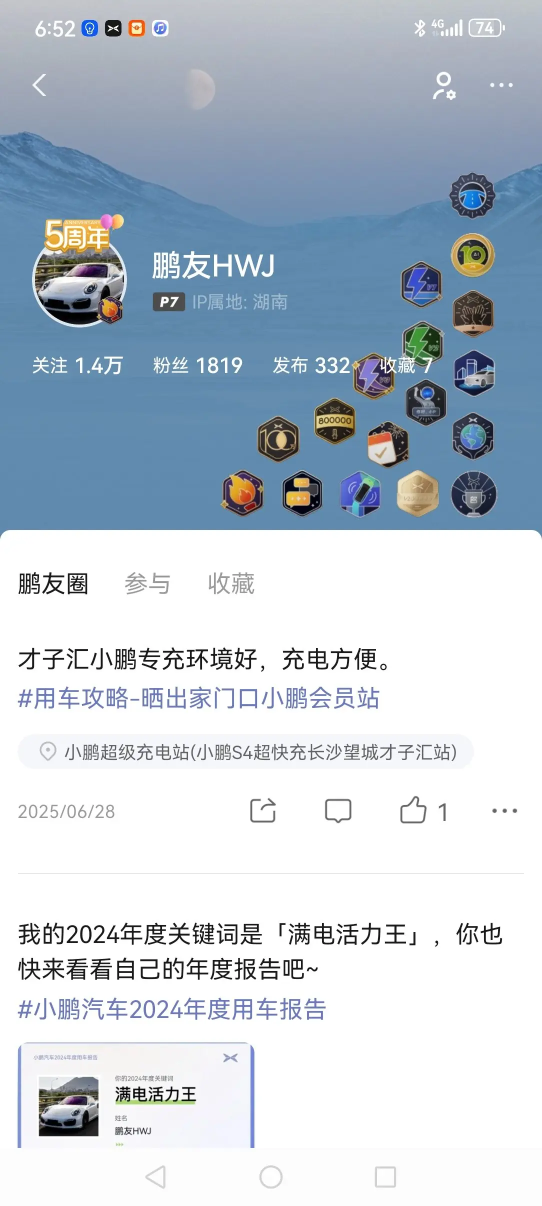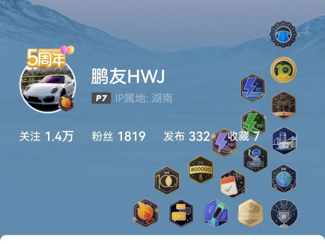 我是第一代小鹏P7车主,开小鹏5年多了,现有勋章17枚。继续努力。