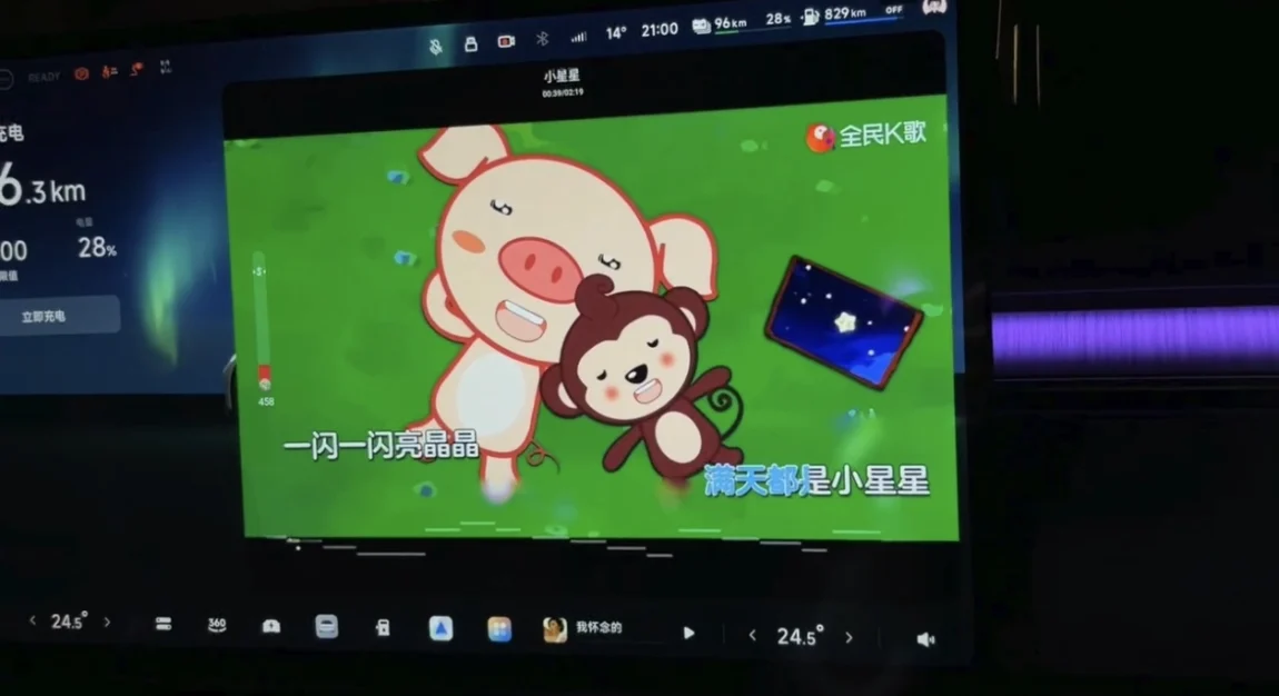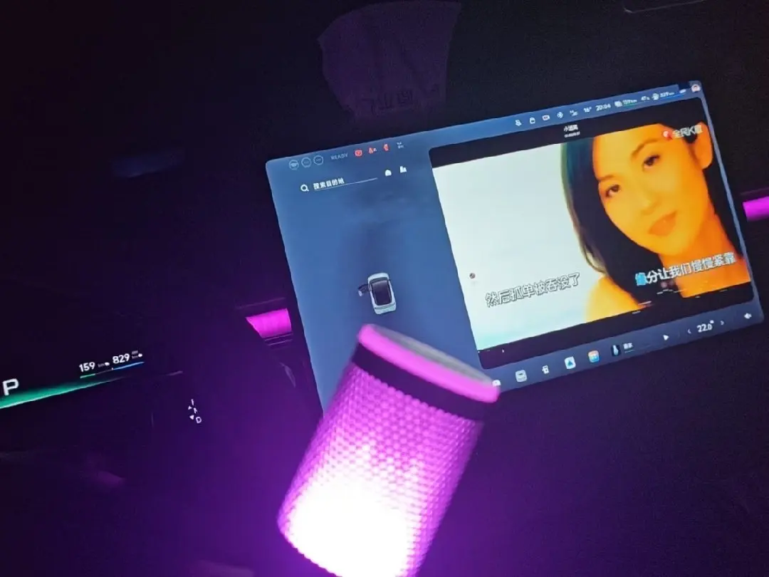 本来只是随手刷到别人推荐,抱着试试的心态买的,结果一上车就被女儿抢着玩。她看到《小星星》的动画MV就坐不住了,小身子跟着节奏晃来晃去,奶声奶气地跟着“一闪一闪亮晶晶”,跑调跑到天边也笑得眼睛都眯成一条缝,还非要把麦克风攥在自己手里,谁都不让碰。平时不爱说话的老爸,居然主动点了首老歌,拿着麦克风跟着旋律轻轻哼唱,老妈在旁边举着手机拍视频,连我都被这股热闹劲儿感染了。紫色氛围灯一开,麦克风收音又清晰,真有种在包厢里唱歌的感觉,比在家看电视有意思多了。