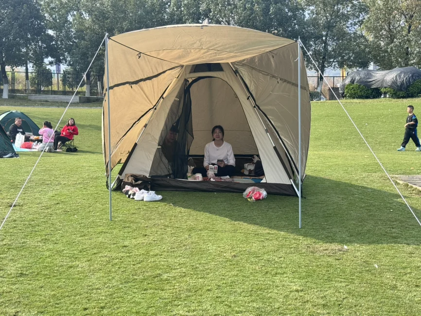 2.帐篷。现在这款好像售罄了,这是买G6之后,因为全家出门露营需求激增,于是在小鹏商城激情下单的宝贝。趁着打折买下来,实测好用的很!有两层,太阳大的时候两层都盖上,太阳不强的时候放下来,可以透气,看风景!另外大门口还有小天幕,可以坐门口遮阳看风景!