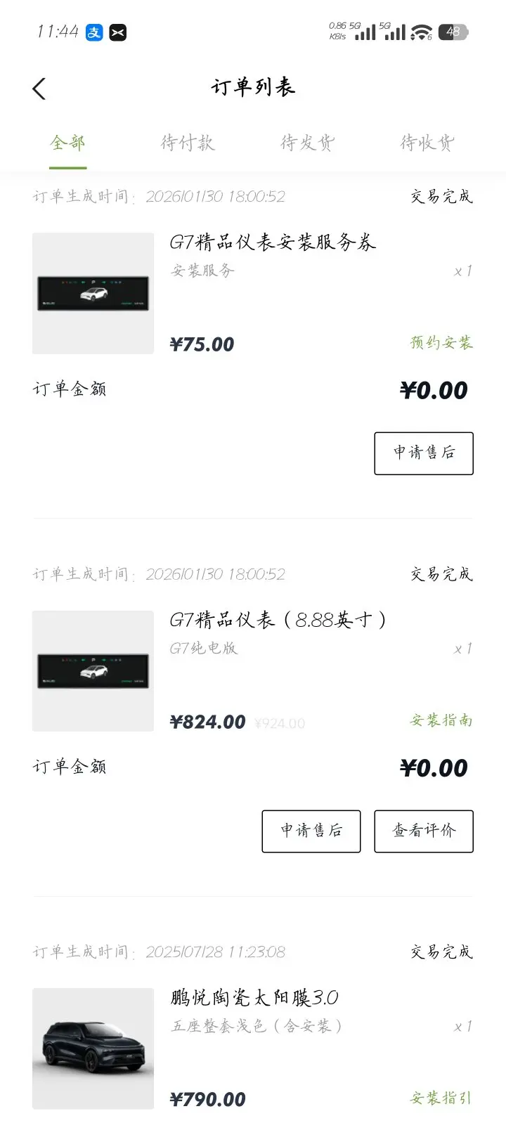算了算还真的买了不少东西,让我最喜欢的还是G7这个精品仪表盘,安装上以后确实不错,可以推荐给大家!