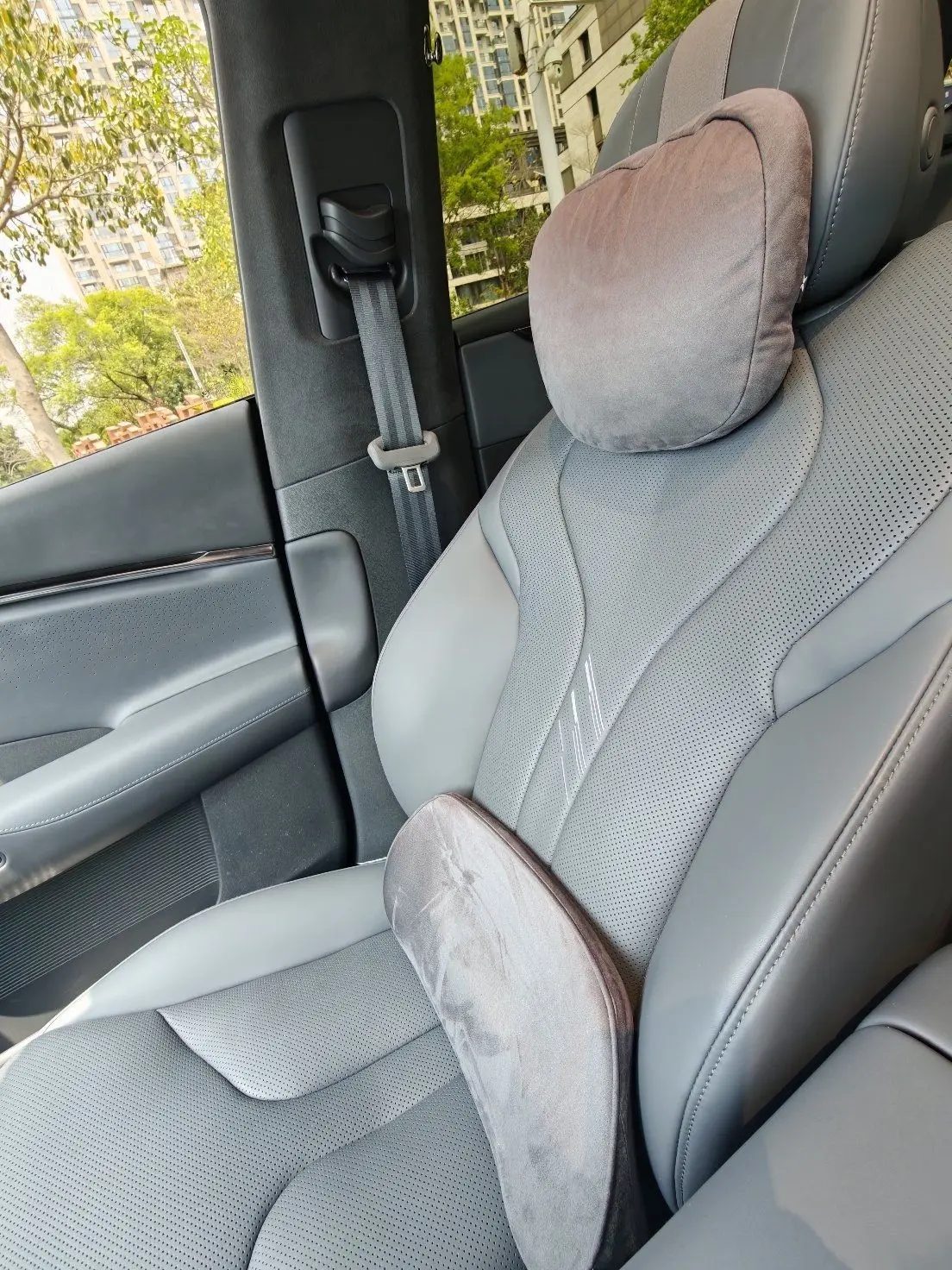 首先是腰靠和头枕,长时间开车,腰部和颈部真的很容易酸痛,有了它们,就像有一双无形的手在托着你,超舒服,支撑性也很棒。