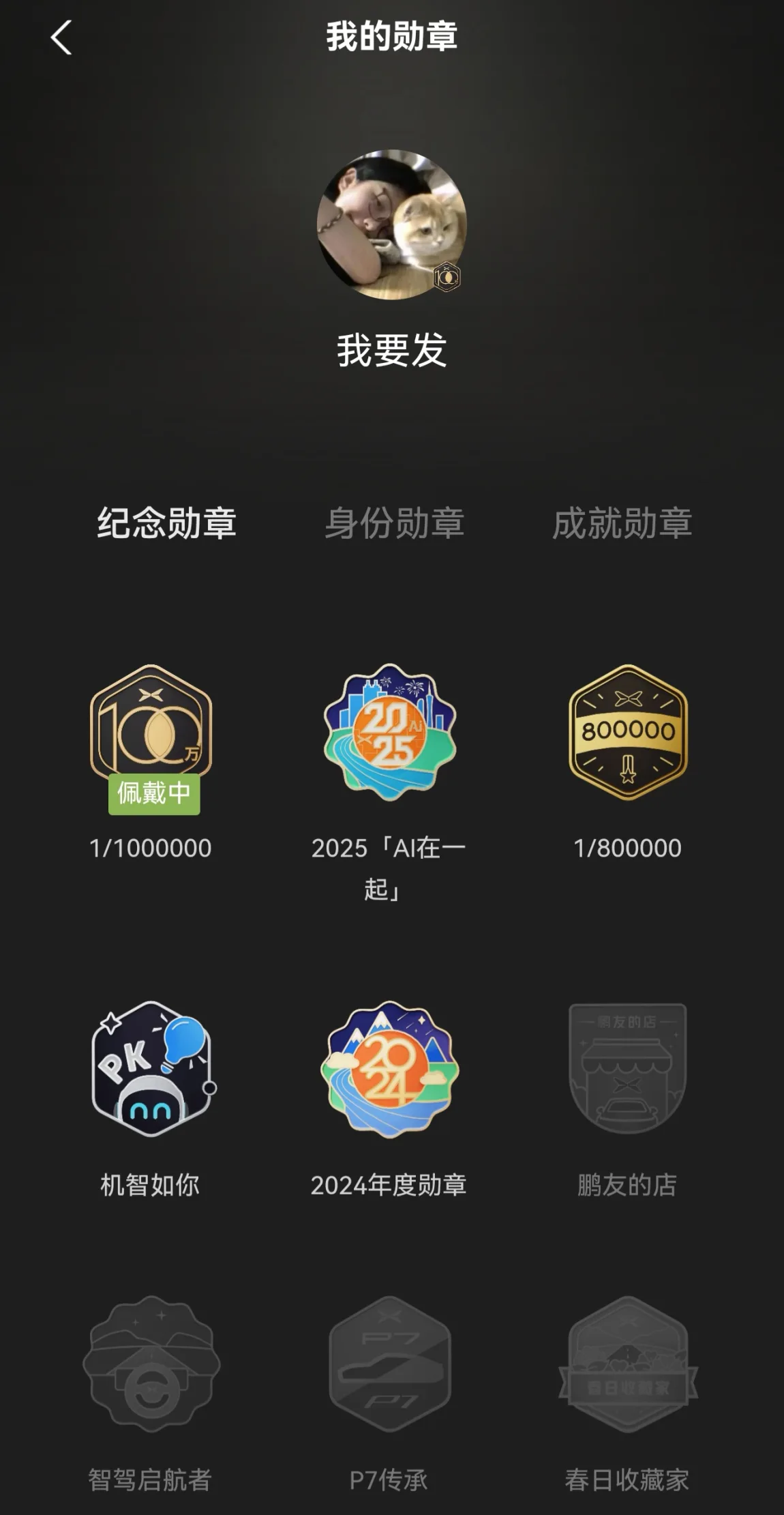 对我而言,小鹏App勋章已经不只是一个功能,而是热爱的载体、陪伴的印记、属于鹏友之间的小浪漫。未来,我也会继续收集每一枚新勋章,和小鹏一起,解锁更多旅程、更多荣耀。@社区活动小姐姐 @鹏友大管家