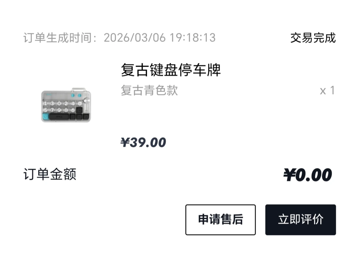 停车牌应该是车上必备物品了。商城的这个复古停车牌设计得非常有特色,美观且有很强的可玩性。键盘豆子安装过程像是拼积木,非常解压;还有一键遮挡号码的功能,不想用时也不需要把停车牌取走,很好地保护隐私,非常推荐👍🏻