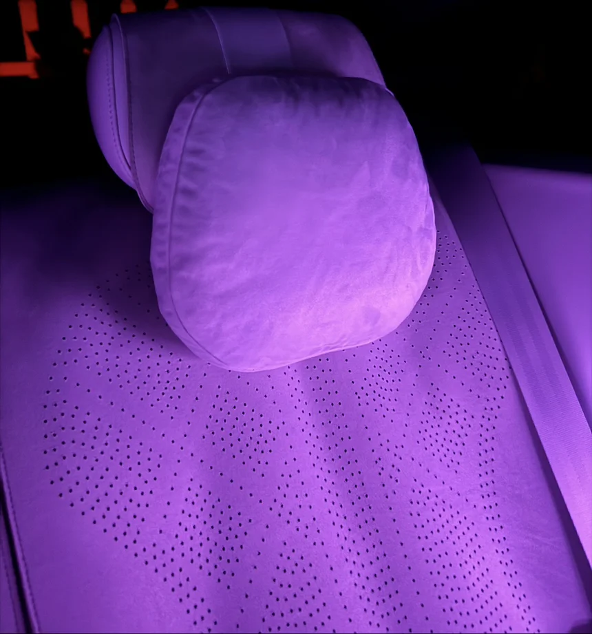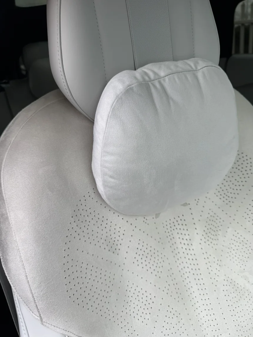 给我的P7+气宇灰内饰挑了同色浅灰头枕腰靠,装上瞬间和原车融为一体,高级感拉满。320g/m²麂皮绒厚实亲肤,透气耐磨还能拆洗,打理超省心。杜邦生物绒填充回弹感拉满,75g用量刚好托住头颈和腰腹,跑长途也不酸。头枕可单手调节,一枕两用,腰靠贴合腰背,开车像被温柔抱住,通勤自驾都舒服到不想下车!