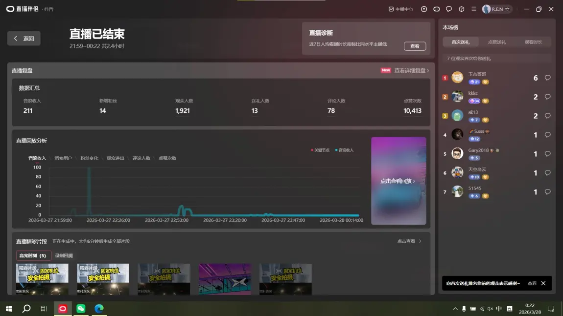 这场直播最终收获了1921位观众、78条评论、10413次点赞,还有14位新朋友选择关注。直播间全程互动热烈,大家共同见证了从城市昏暗街巷到郊区无灯乡道,车辆全程0接管、稳定从容的表现。