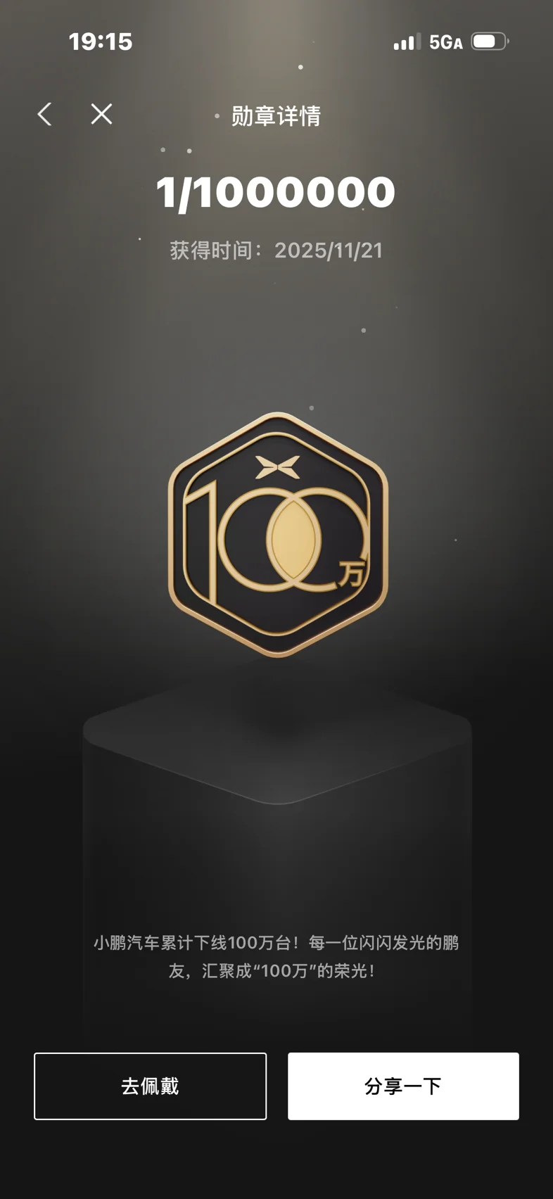 这两枚勋章串联起“80万→100万”的跃迁轨迹,让我亲手触摸到品牌“从优秀到卓越”的加速度,这种“参与感”是普通消费者难以拥有的珍贵体验。它们是我与小鹏汽车“共同成长、双向成就”的鲜活见证,更是中国智能汽车产业崛起浪潮中,用户与企业“共生共荣”的微观缩影。