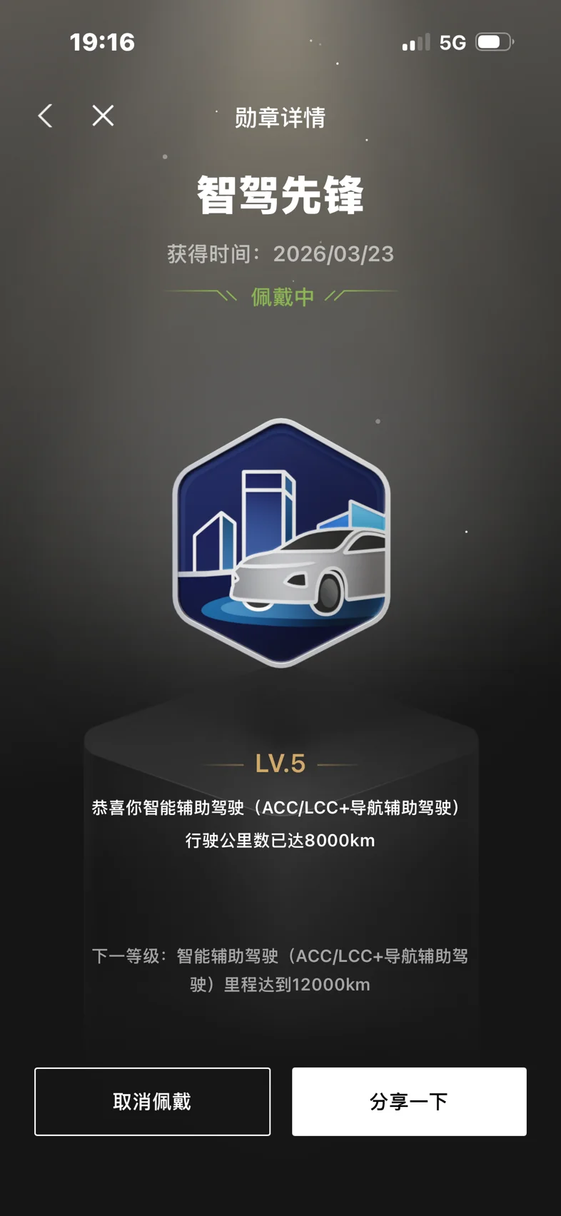 217天的陪伴时长、14033km的整车里程、8232km的辅助驾驶里程(占比59.25%),平均每天都要辅助驾驶36公里。以及「智驾先锋LV.5」勋章(智能辅助驾驶里程8000km),这枚勋章的意义已经超越“功能使用记录”,成为你与小鹏“智能出行革命”的深度共鸣凭证!