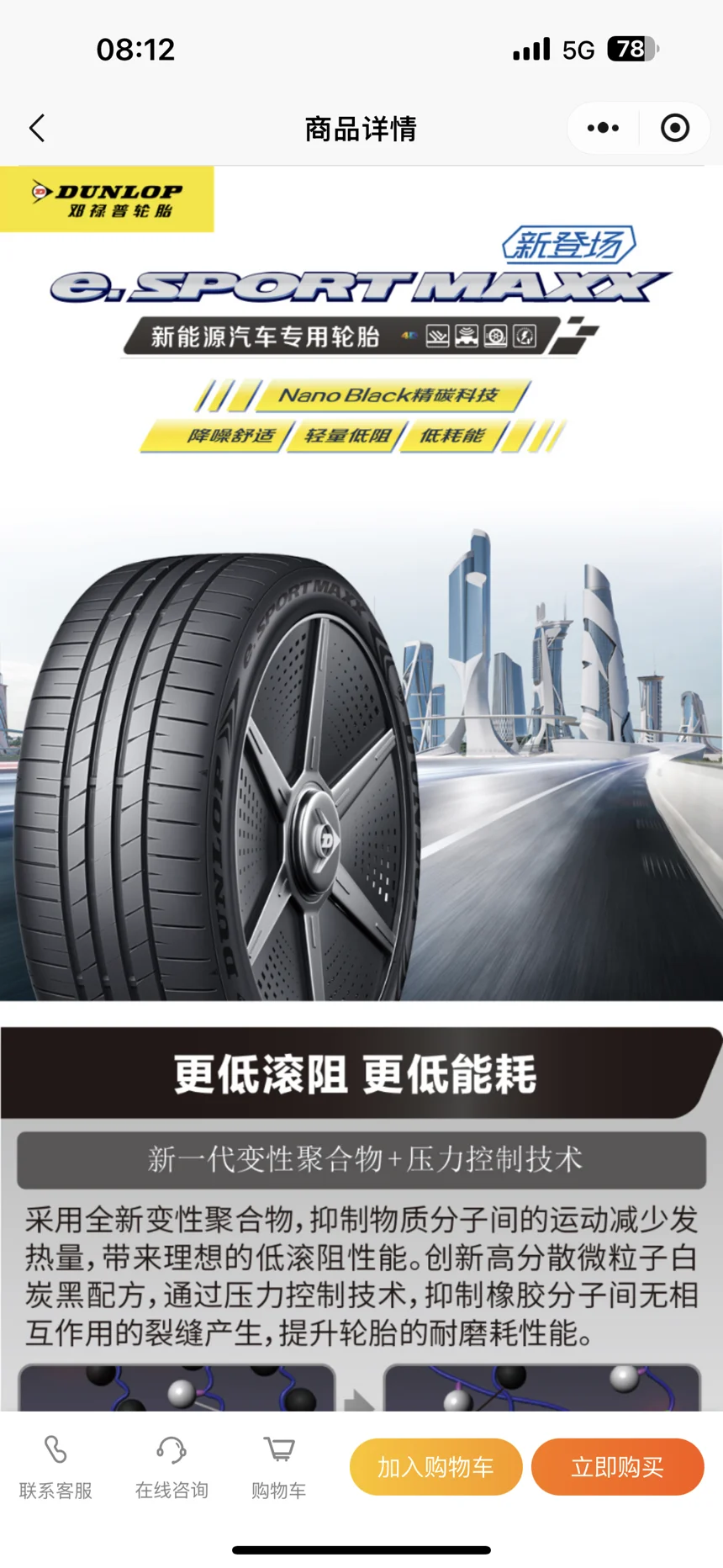 上个月在四个备选项中选择了邓禄普的e.sport maxx花纹的ev胎,当时突🐯和邓禄普官网价格相差不大,在官网联系了几家门店询价,选最低价D驾族门店订货安装,每条比线上便宜了200。