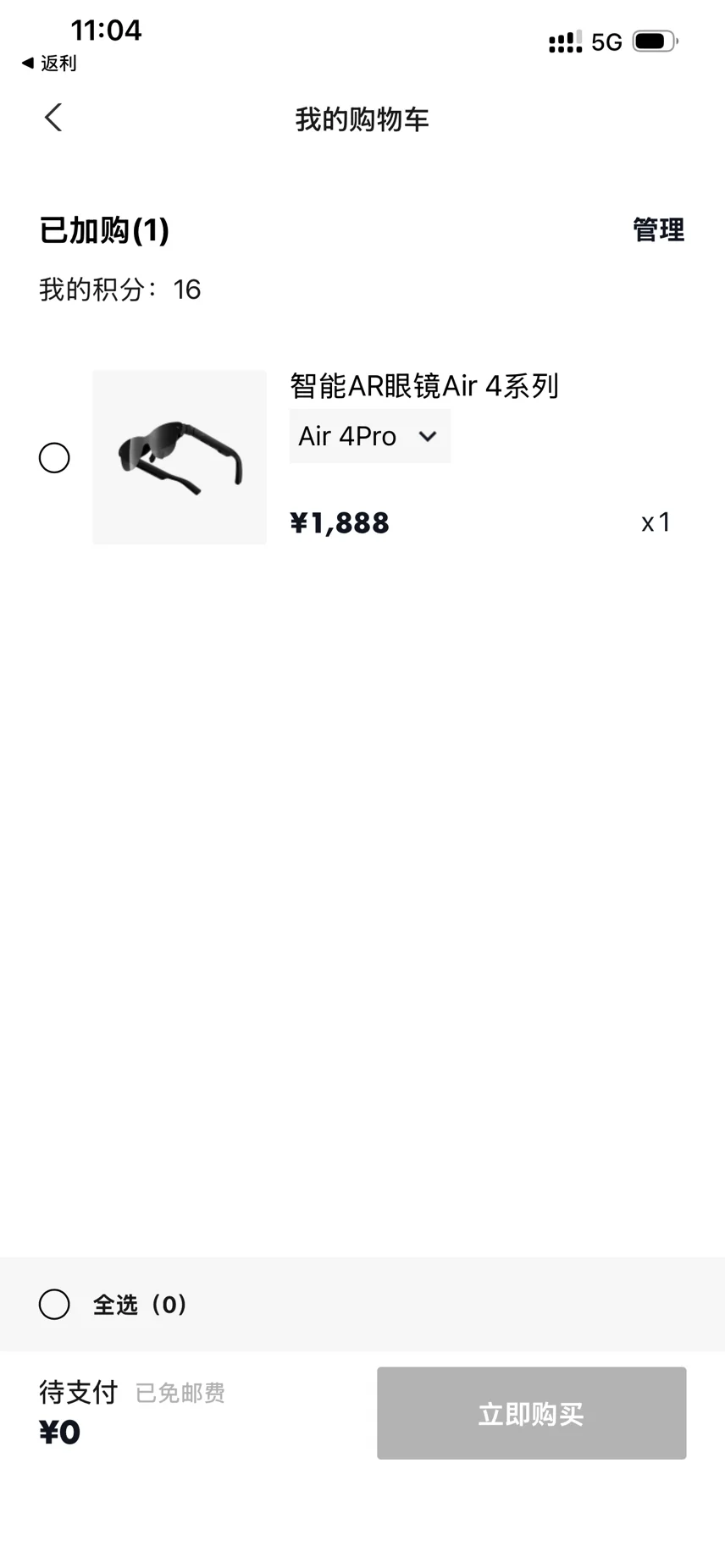 现在购物车里还放着一款智能AR眼镜,希望能得点积分助我一举把它给拿下😍