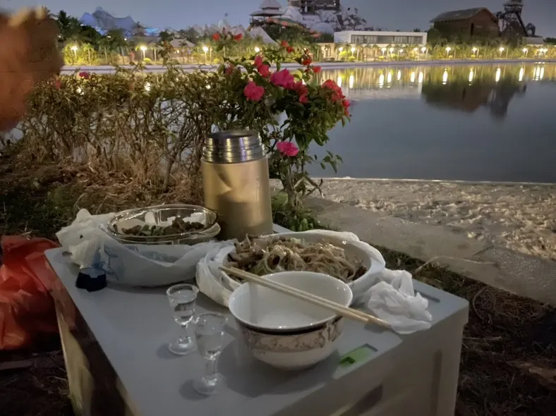 折叠的户外收纳箱,把它拼好就相当于一个小桌子,户外享受美食。