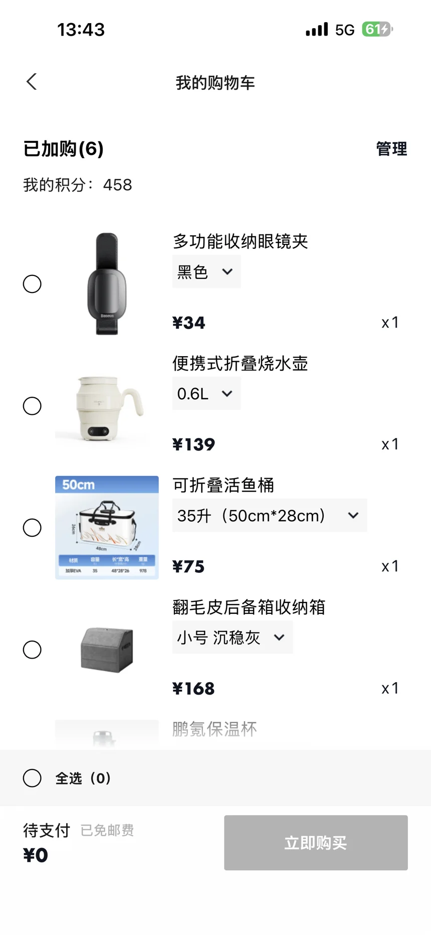 还参加了几次活动送了些积分,换了心心念念的麦克风🎤,这下自驾出去玩在车上就不会无聊了,可以一路嗨歌,其实我购物车还收藏了一些小物件,可是积分不够了,等我赚够积分再来拿下它们吧