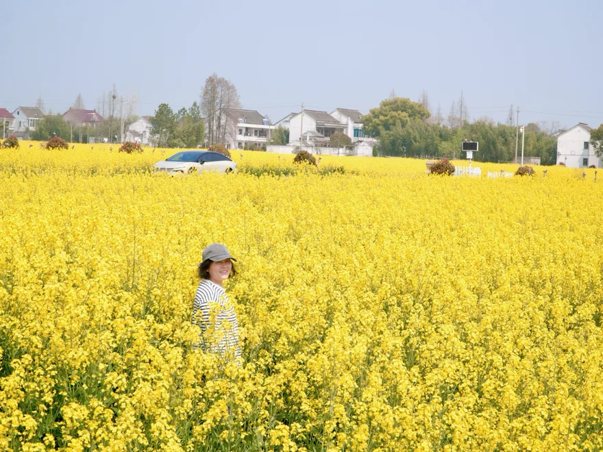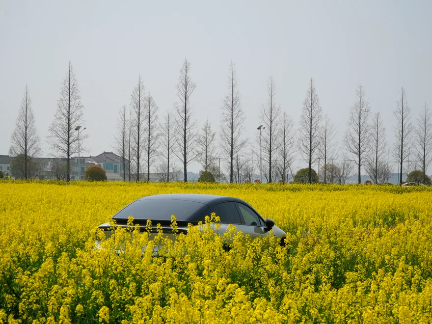 驾着小鹏P7+,闯入蒋村的一片金黄。🚗