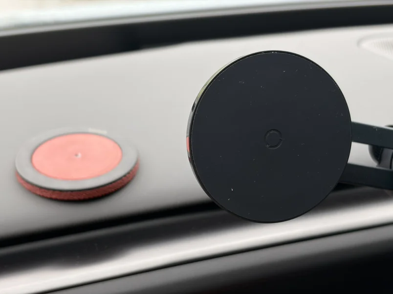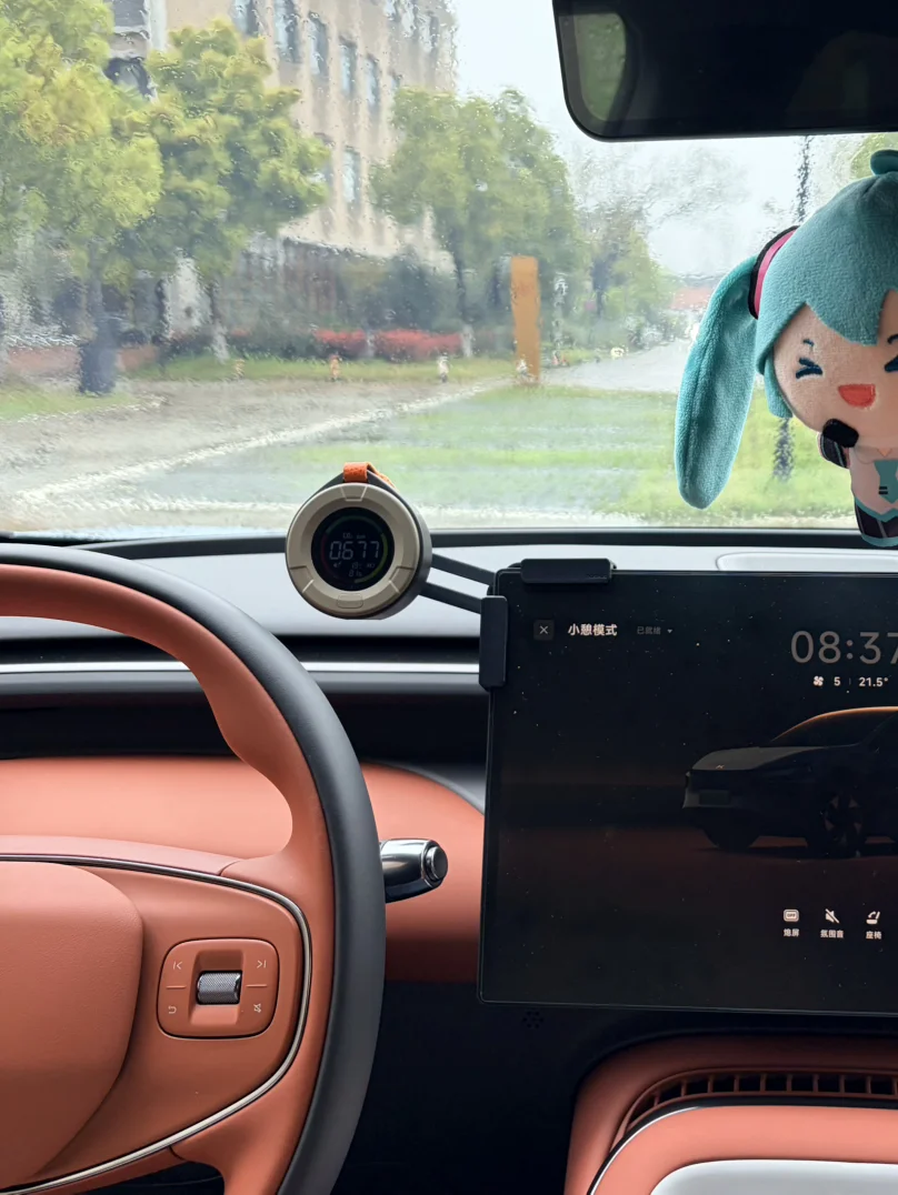 它背后是磁吸的,用3D打印机给手机支架做了磁吸槽,这样就能像仪表一样牢牢的固定在支架上。另外,它内置电池,C口充电,隔一天充一次就行。