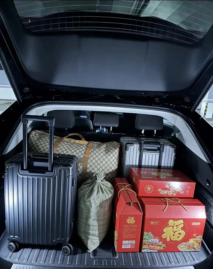 春节回老家装着带给父母的礼物,还有全家的行李,再也不用纠结取舍,后备箱的隐藏储物格还能放保险盒、换洗鞋子这些小物件,规整又不占主空间,还能隔离味道,实用感拉满。