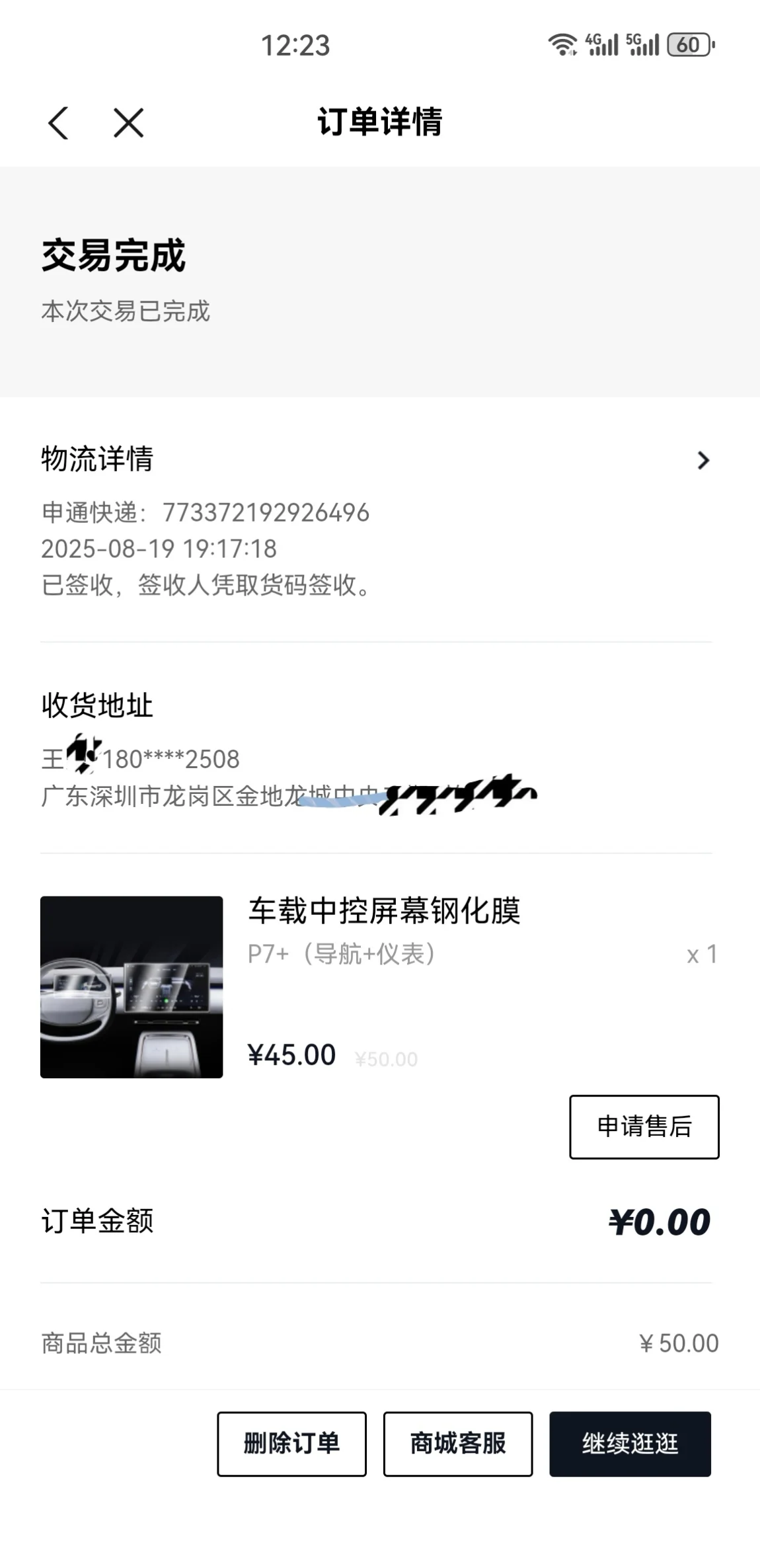收到货后,自己很轻松就贴好了,效果很好,没有气泡。好像没有贴膜一样!