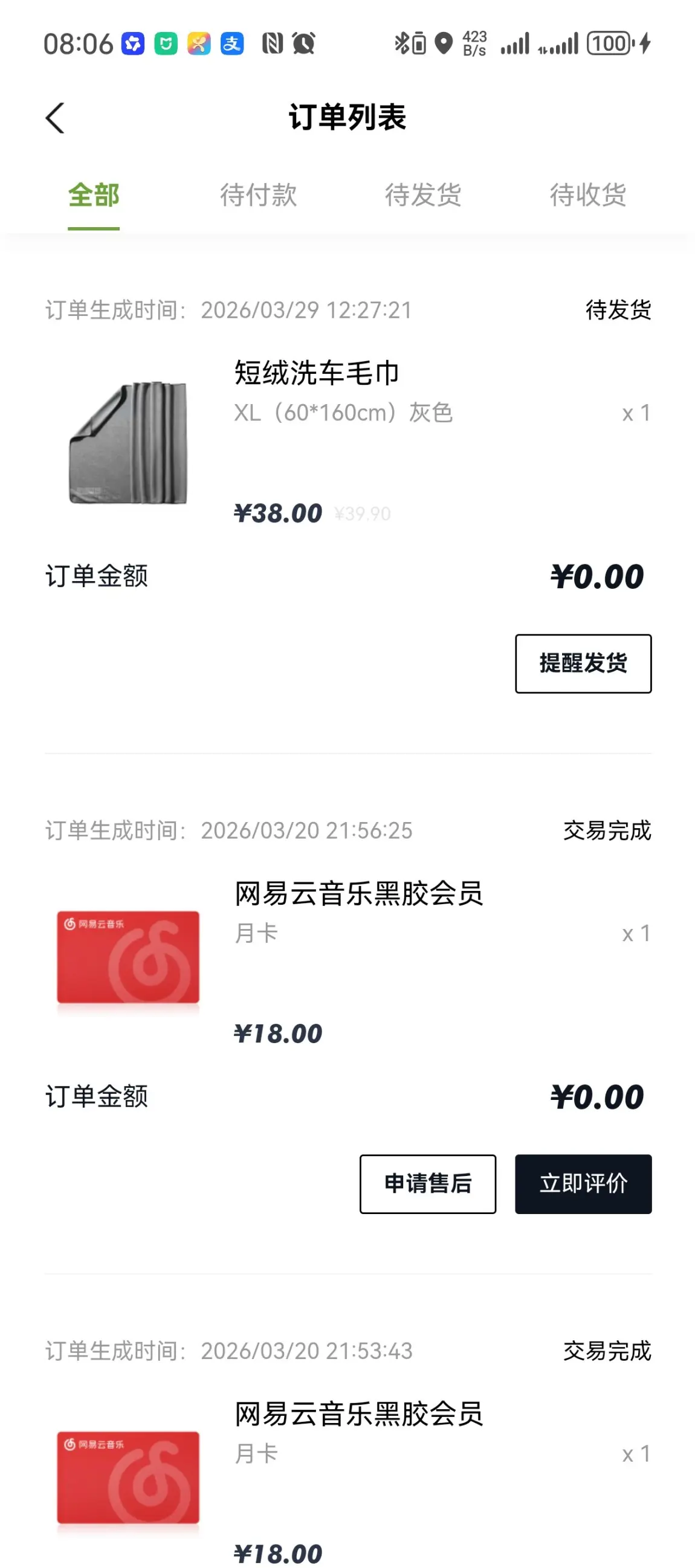 以下是订单截图,尽可参考,对号入座,现在商城的好物只会越来越升级,现在这些东西再买肯定又比我买的时候质量好得多,各位一定要相信商城