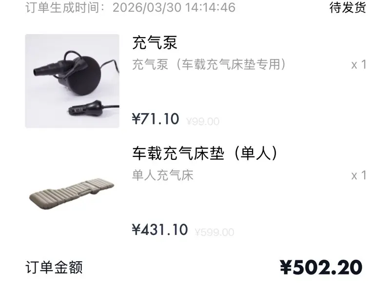 很期待小鹏商城的的东西,尤其这个气垫床,特别的期待