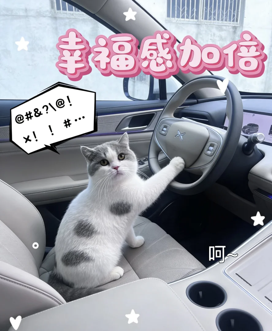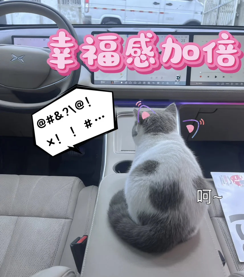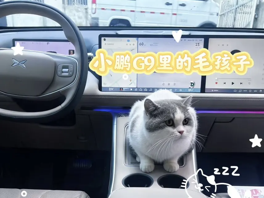 自从把我家英短蓝白拐上小鹏G9,才发现什么叫人车宠三重幸福感拉满!