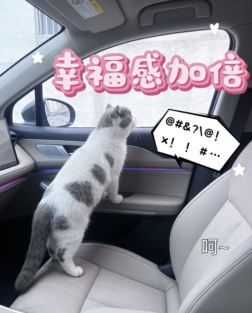 超大车窗+通透视野,主子能全程看风景解闷,连emo都少了!智能座舱的静音表现绝了,怠速几乎零噪音,空调风柔又温和,完全是「治愈系小窝」。