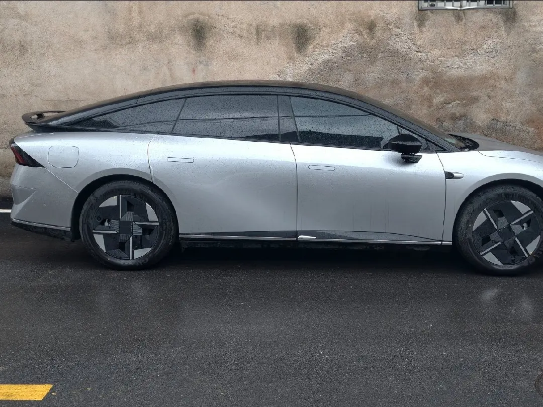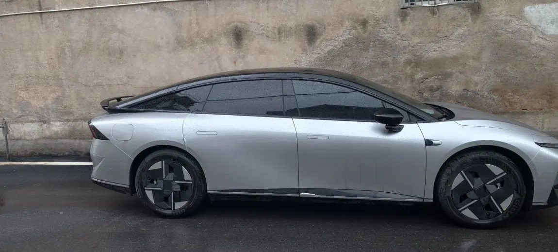 我和它的缘分,始于一眼沦陷的心动。很多人问我,是被它的外观拿捏,还是被这个颜色戳中?其实都有,却又不止于此。这台银黑双色的车身,没有浮夸的设计语言,液态银的哑光质感,在下雨天里格外动人——水珠顺着溜背的线条自然滑落,不会糊成一片狼狈的水痕,反而给流畅的车身添了几分流动的温润。它的轿跑造型,不是为了溜背而牺牲实用的噱头,无框车门、简约几何设计的轮毂,所有的个性都不是张扬给别人看的,是内敛的、藏在细节里的质感,是我每次锁车回头,都会忍不住多看两眼的喜欢。这种一见钟情,从来不是因为它够炸街,而是它的审美,刚好和我对“体面不张扬”的生活追求完美契合。