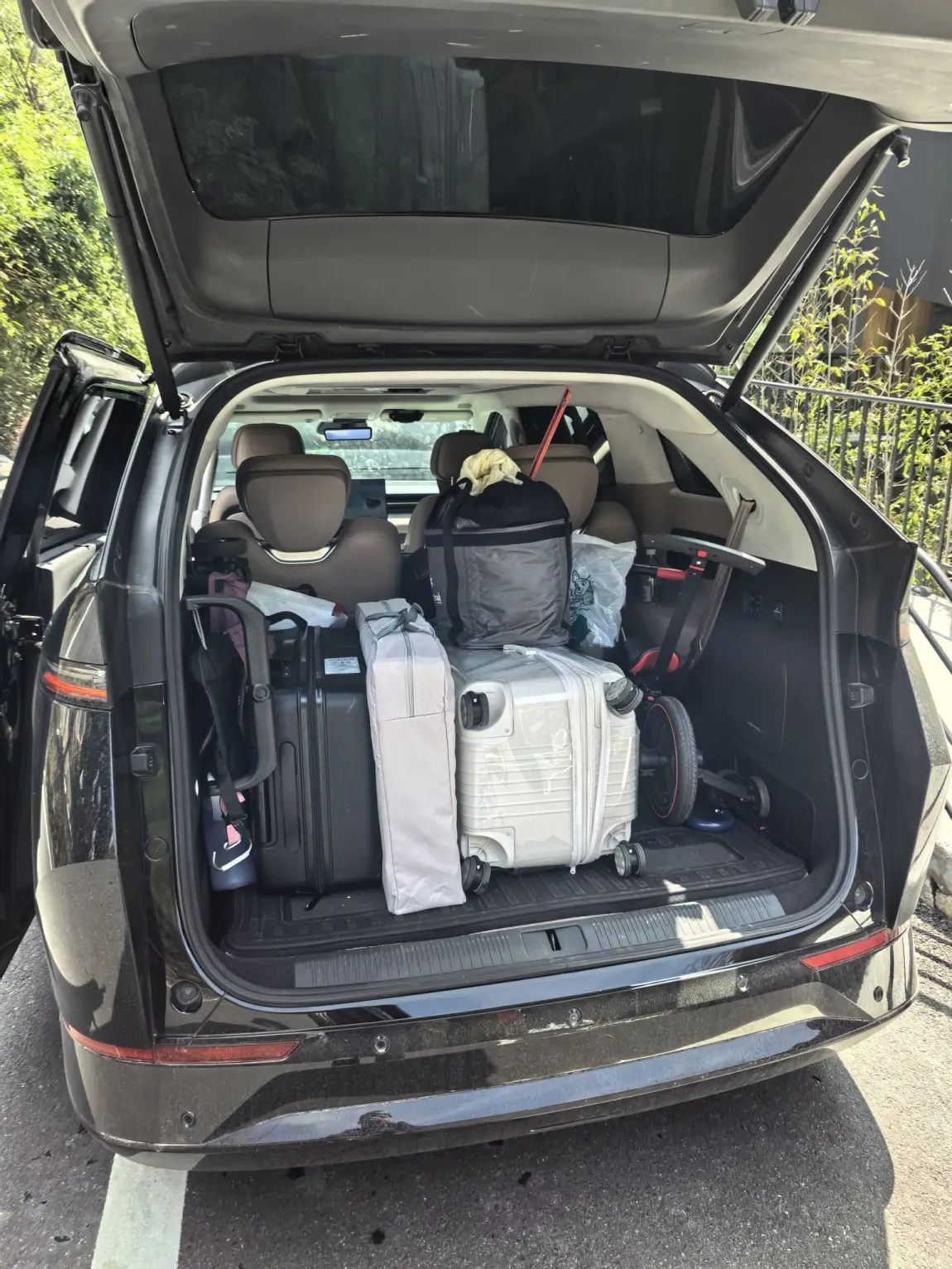 一家三口出门10+天,什么都带齐,孩子的床围,单车,婴儿车,我们的行李等等。。还有很多空间可以用