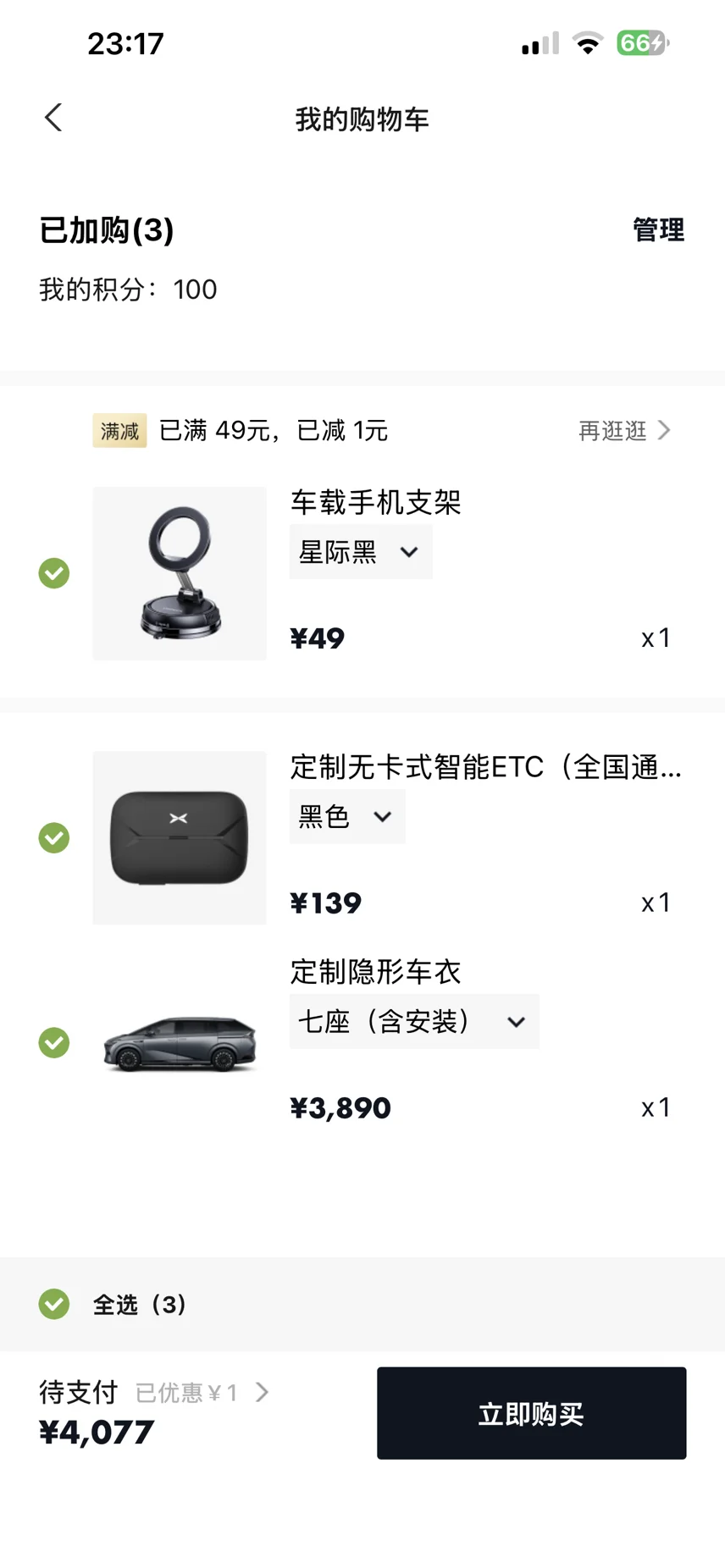 #好物分享# 提车后就喜欢经常打开小鹏App看看,偶尔间在小鹏商城购物车逛了逛,最想买这三样: