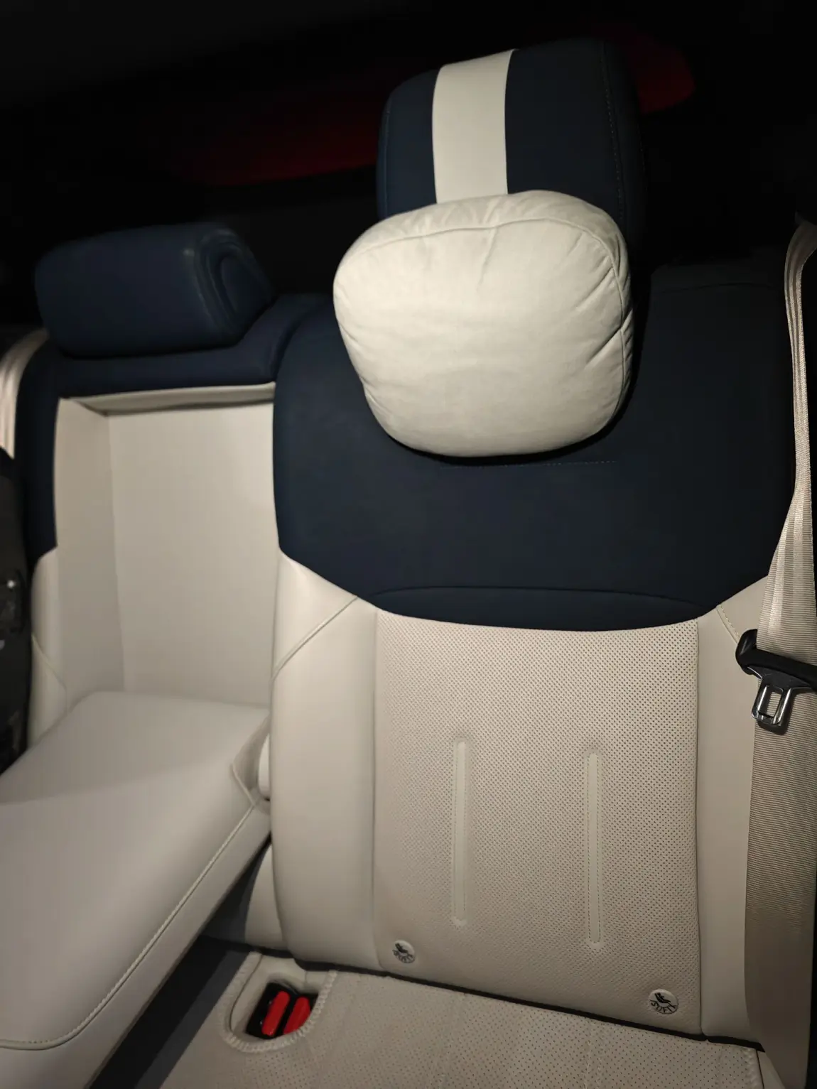 G6的原车座椅支撑性已经很出色,但长时间通勤或者跑高速,还是需要额外的支撑来缓解疲劳。这款商城专属的头枕腰靠,材质软糯又有恰到好处的支撑力,细腻的麂皮面料和原车的蓝白内饰完美适配,没有一点违和感。我主副驾都早早安排上了,头枕刚好贴合颈椎曲线,腰靠能稳稳托住腰部,现在开几个小时高速也不会腰酸脖子僵。