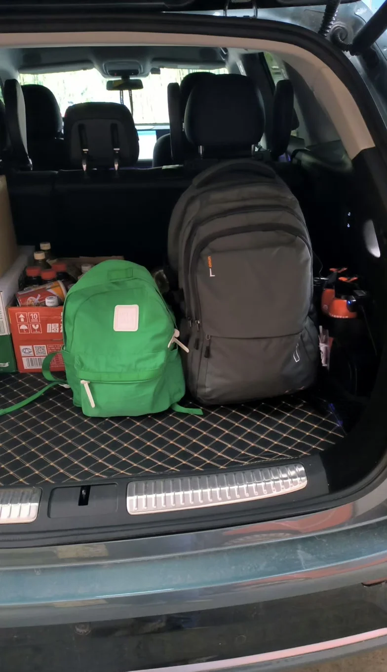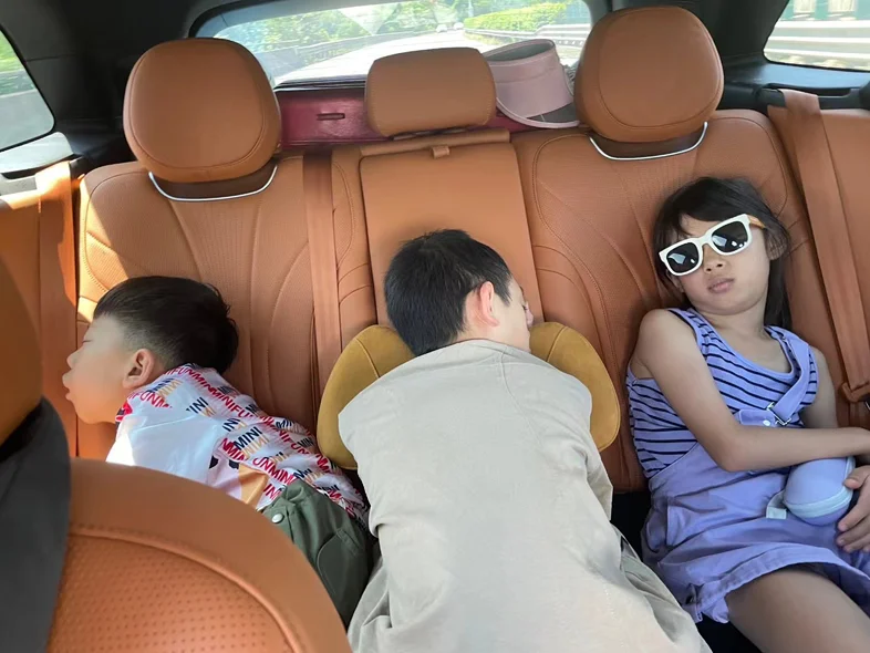 返程时,夕阳给G9镀上一层金边。我特意绕路去了江边,看着江面波光粼粼,春风拂面,舒服得很。后排的按摩座椅和娃儿的小桌板,让他们在返程路上也能舒舒服服地打个盹,彻底解放了我们的双手。