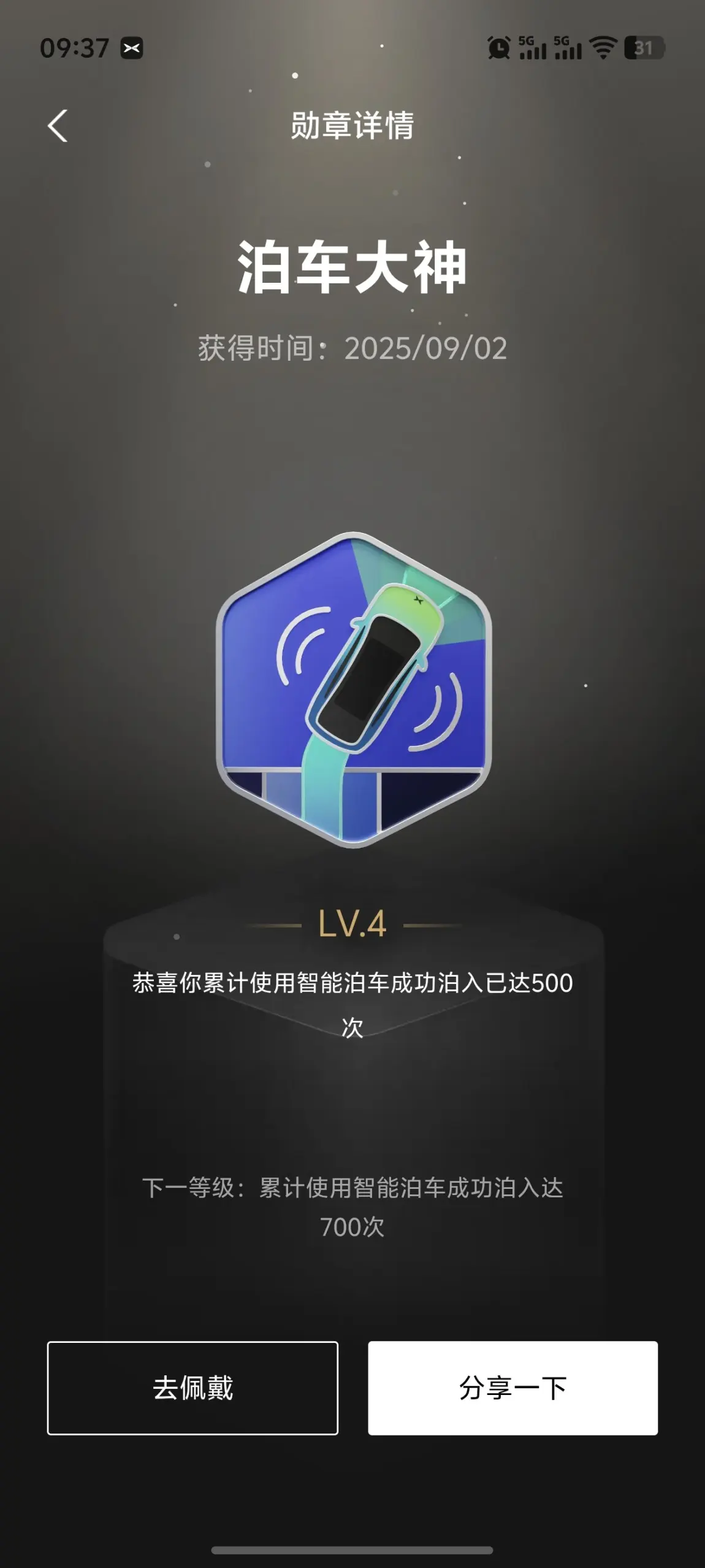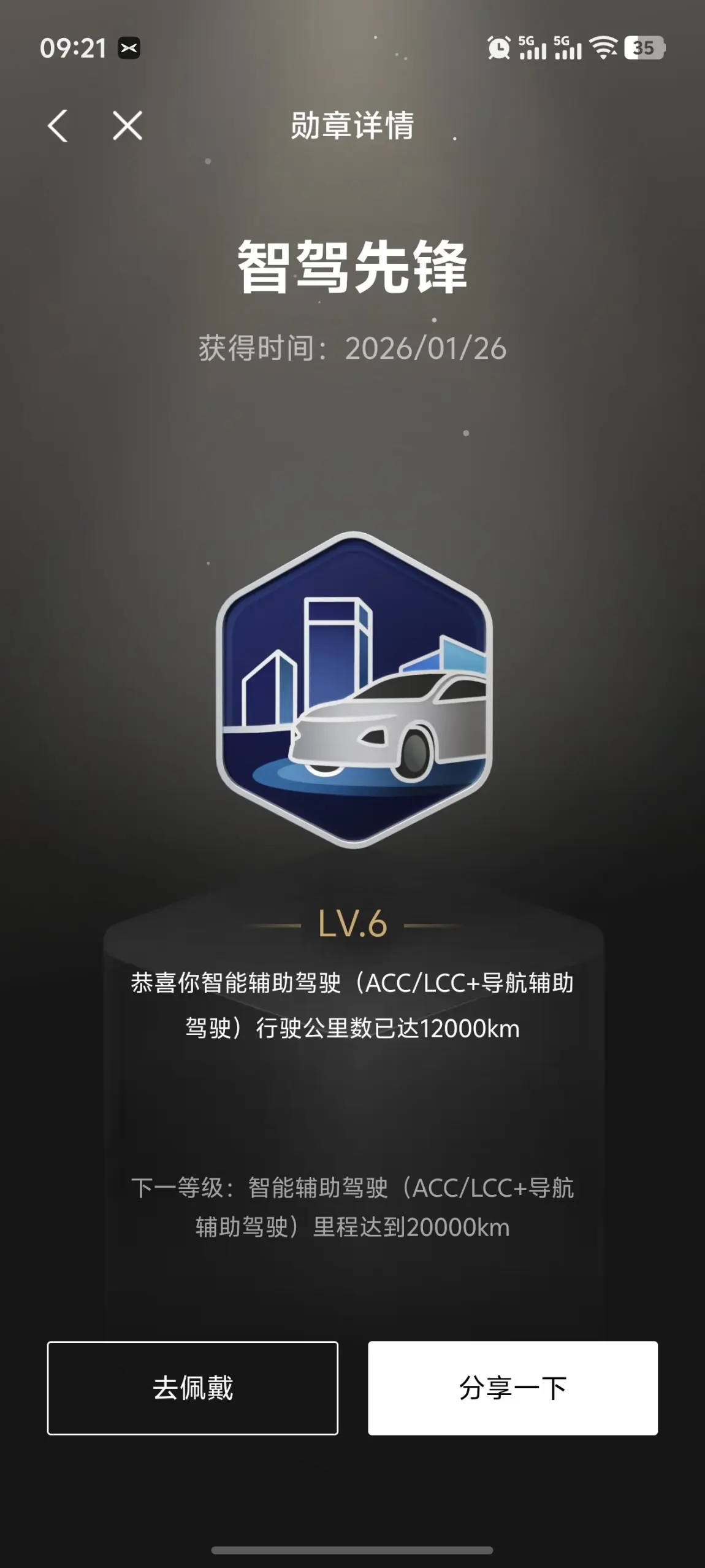 4️⃣最贴合我日常用车的,必须是「智驾先锋」LV.6勋章。
