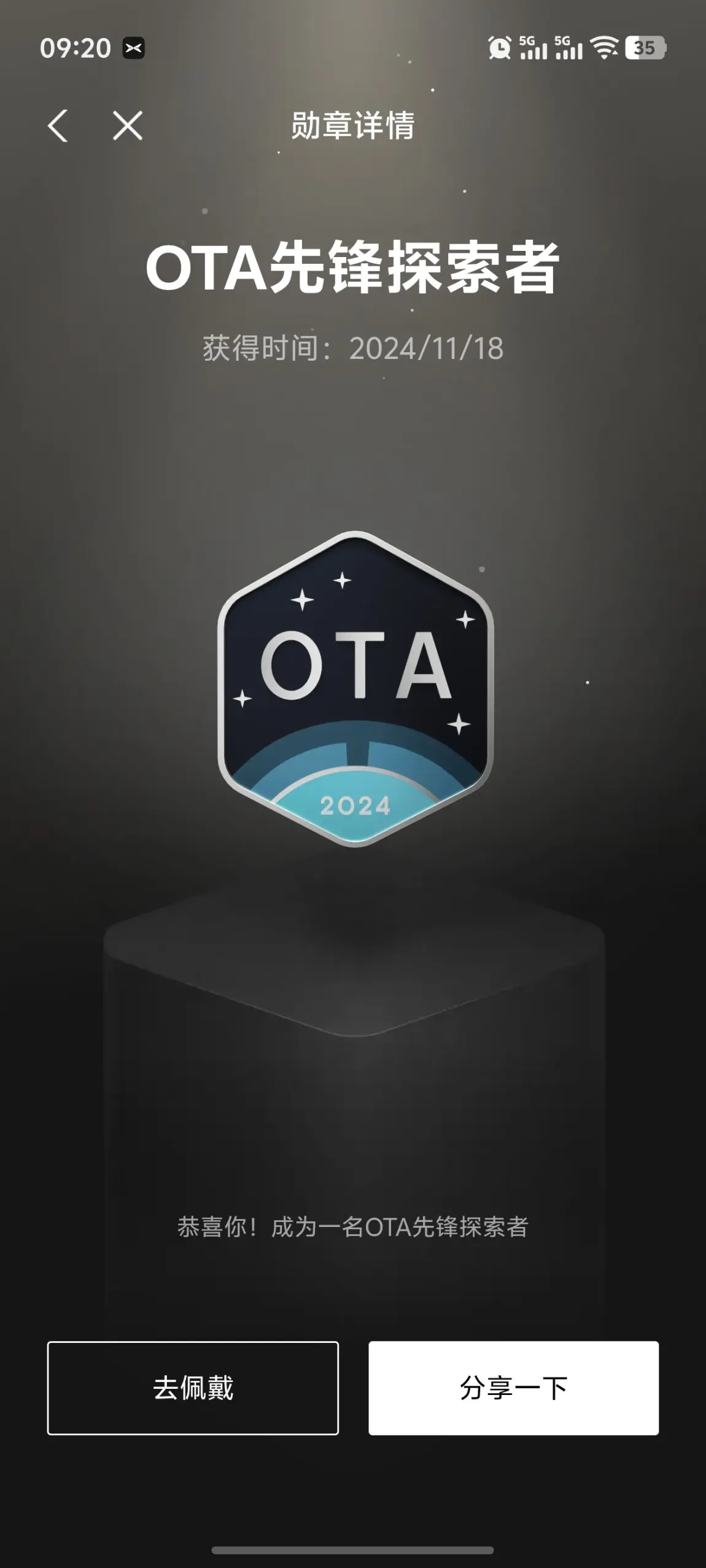 5️⃣还有一枚很有意义的,是「OTA先锋探索者」勋章。