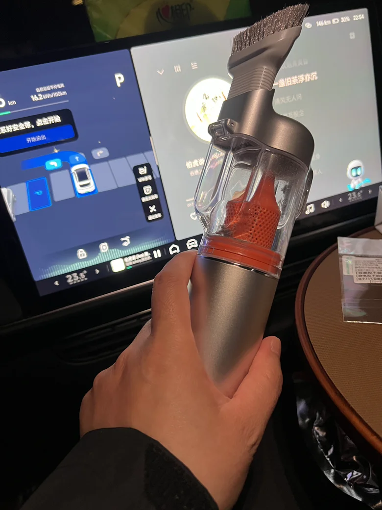 小鹏商城这款 BASA联名口袋吸尘器,做工质感在线。主打小巧便携、吸力够用,车内清洁全覆盖,两档吸力:弱档6000Pa、强档17000Pa。吸零食渣、宠物毛、座椅缝隙、脚垫泥沙、扶手箱死角都没问题,配长嘴吸+短毛刷,缝隙和表面都能清。小巧便携,随手放、随手用,口袋大小,可放车门储物格,无线手持,单手操作,女生也轻松。续航够用、充电方便,弱档续航约50分钟,一次清整车足够,Type‑C通用充电,车载/家用/充电宝都能充。一键开盖倒垃圾,不用手抠滤网。
