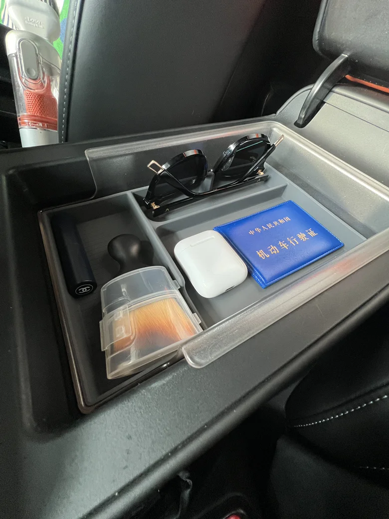 小鹏原厂扶手箱储物盒,原车开模,严丝合缝,放进去不晃、不跑、不异响,急刹车也不乱动。分层收纳,找东西超快,上层放钥匙、卡片、口红、证件、票据、小杂物一伸手就拿到,不用乱翻。材质好、静音、不伤车,内层软硅胶,跟车里内饰质感差不多,放东西没噪音,也不会刮花原车扶手箱。