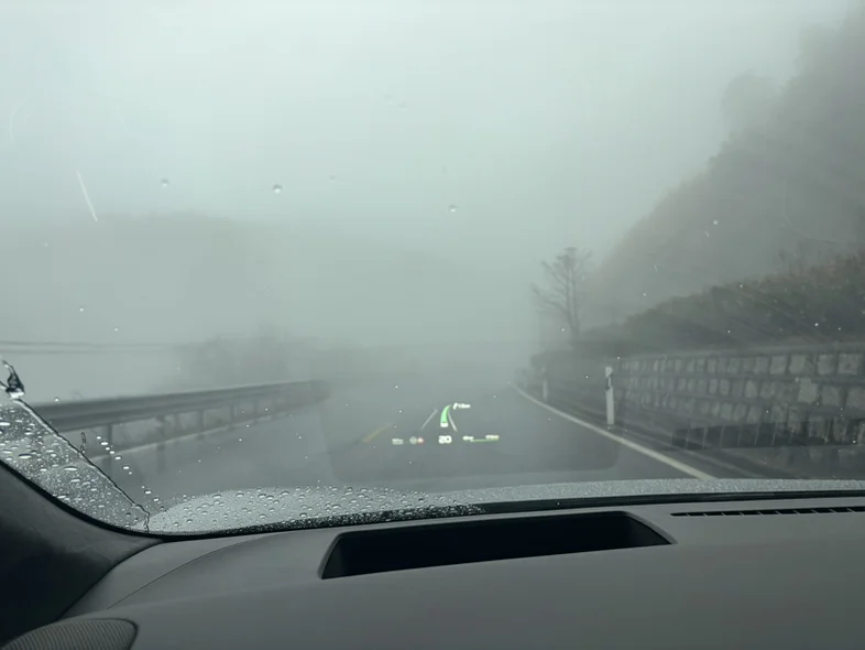 开着我的小鹏P7+来跑山,一进山就被层层云雾包裹,蜿蜒的盘山公路在白雾里若隐若现,像在水墨画里穿梭。