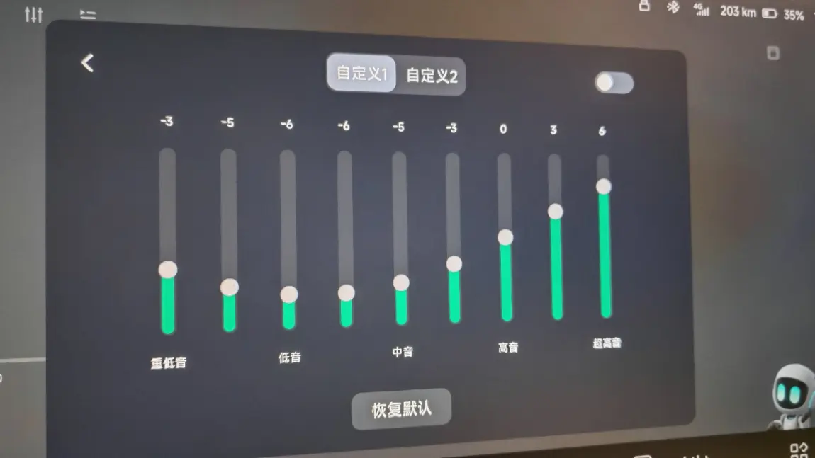 去年换完芯片主机后一直以来的音响的自定义问题,直到去年最后一次更新后稍微解决了后又出了更大问题,就是音量调大到一定程度会破音爆音,很夸张的那种,因为本人喜欢大音量所以系统更新完立马就中招了,从去年过年那段时间这边4s研究了几次都没找到原因,直到昨天这边师傅定了一整套喇叭功放等设备再一次检测后,反而发现是软件问题,还是车子系统自带播放器里面的自定义,打开自定义均衡器,低音部分稍微调一点,播放歌曲音量调到某个节点就会无限爆音。