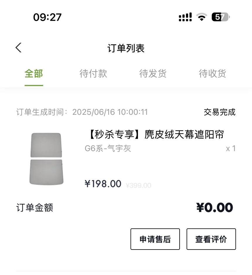 G6的大天幕虽然视野好,但夏天真的太晒了!这款原厂麂皮绒天幕遮阳帘是我用过最好的一款产品,气宇灰的颜色和原车内饰完美融合,遮光隔热效果拉满,安装简单,不用时还能轻松收纳,再也不怕夏天被晒得发烫,同时还能保护隐私,露营休息时安全感满满。