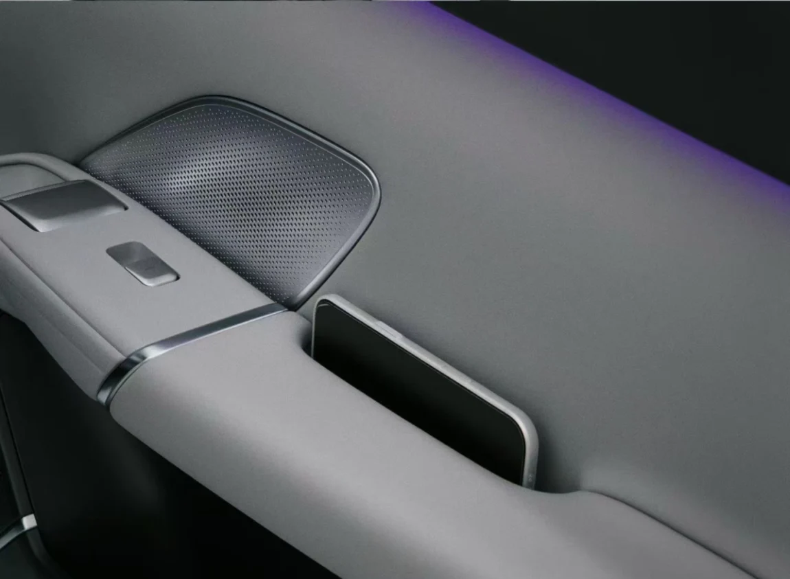 - 顶棚和手机置物台用了仿麂皮材质,摸起来细腻亲肤,还能减少反光,高级感直接拉满!