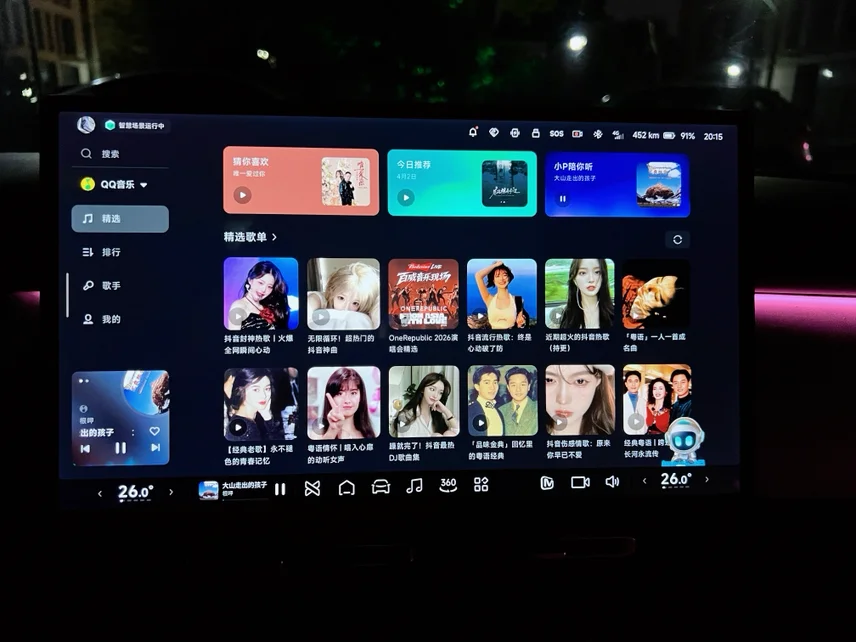 QQ音乐更是上车必开的快乐源泉,车机端操作简单,语音切歌、换歌单一键搞定,开车途中不用分心,海量曲库随便听,不管是通勤路上的提神歌单,还是自驾时的氛围感旋律,都能精准拿捏,一路听歌一路走,堵车都变得不枯燥。