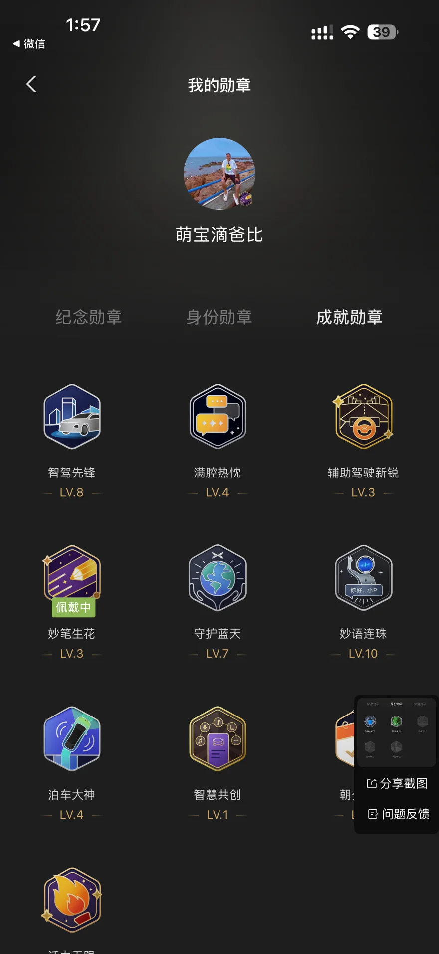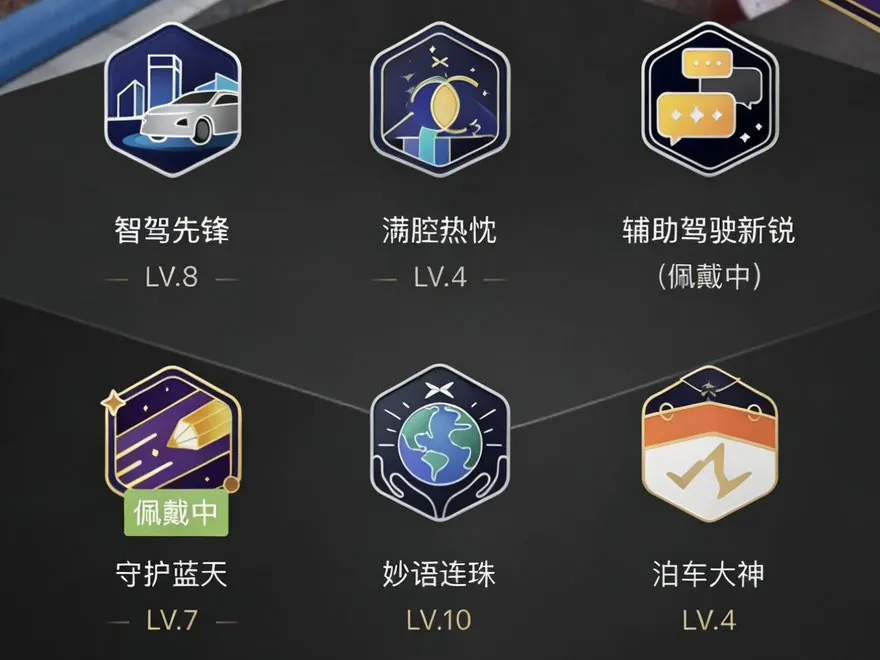 全球AI智能座舱,是吸引我买车的原因。从一开始对智驾的不熟悉,小心翼翼,到后来如臂驱使。到现在为止我总共开了九万三千公里,这枚8级勋章就是最好的见证。