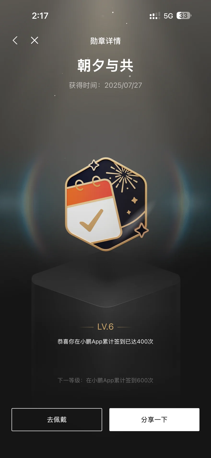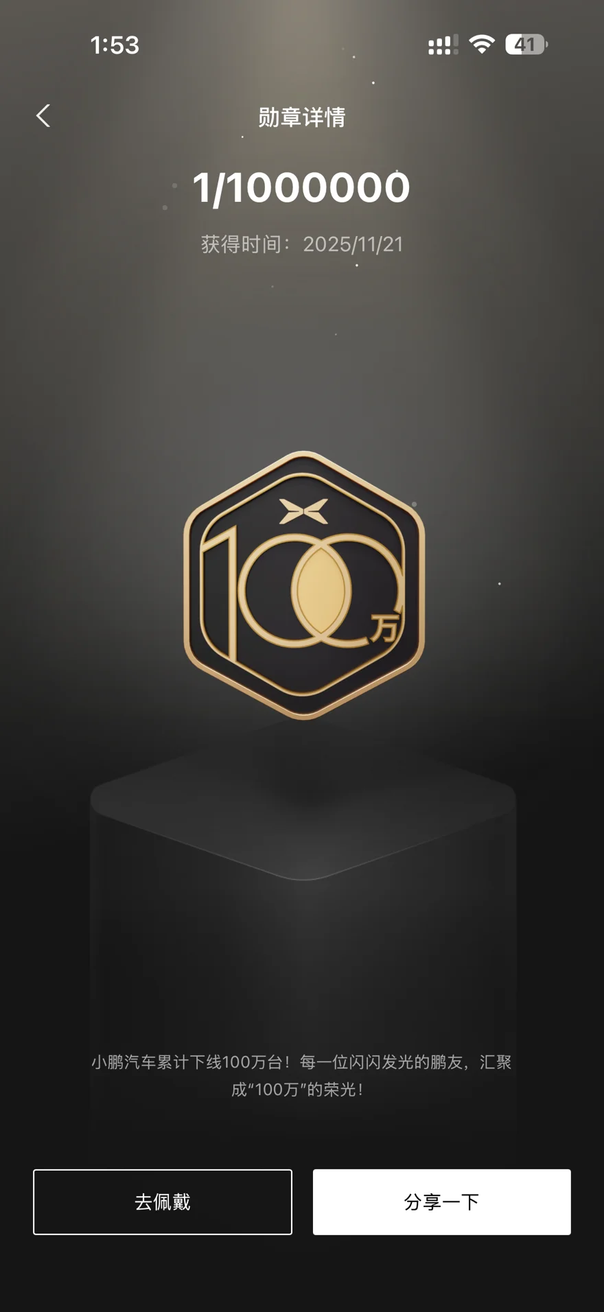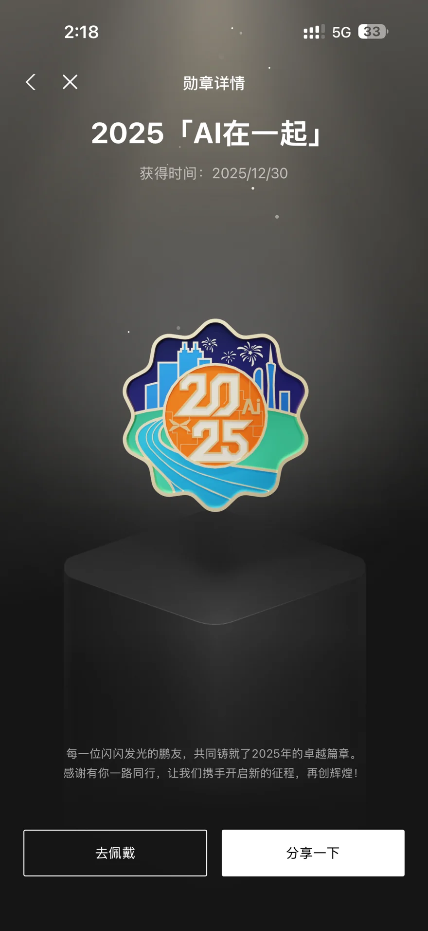 而我佩戴着2025的年度勋章,也是代表着我依旧是一个活跃的小鹏车主。