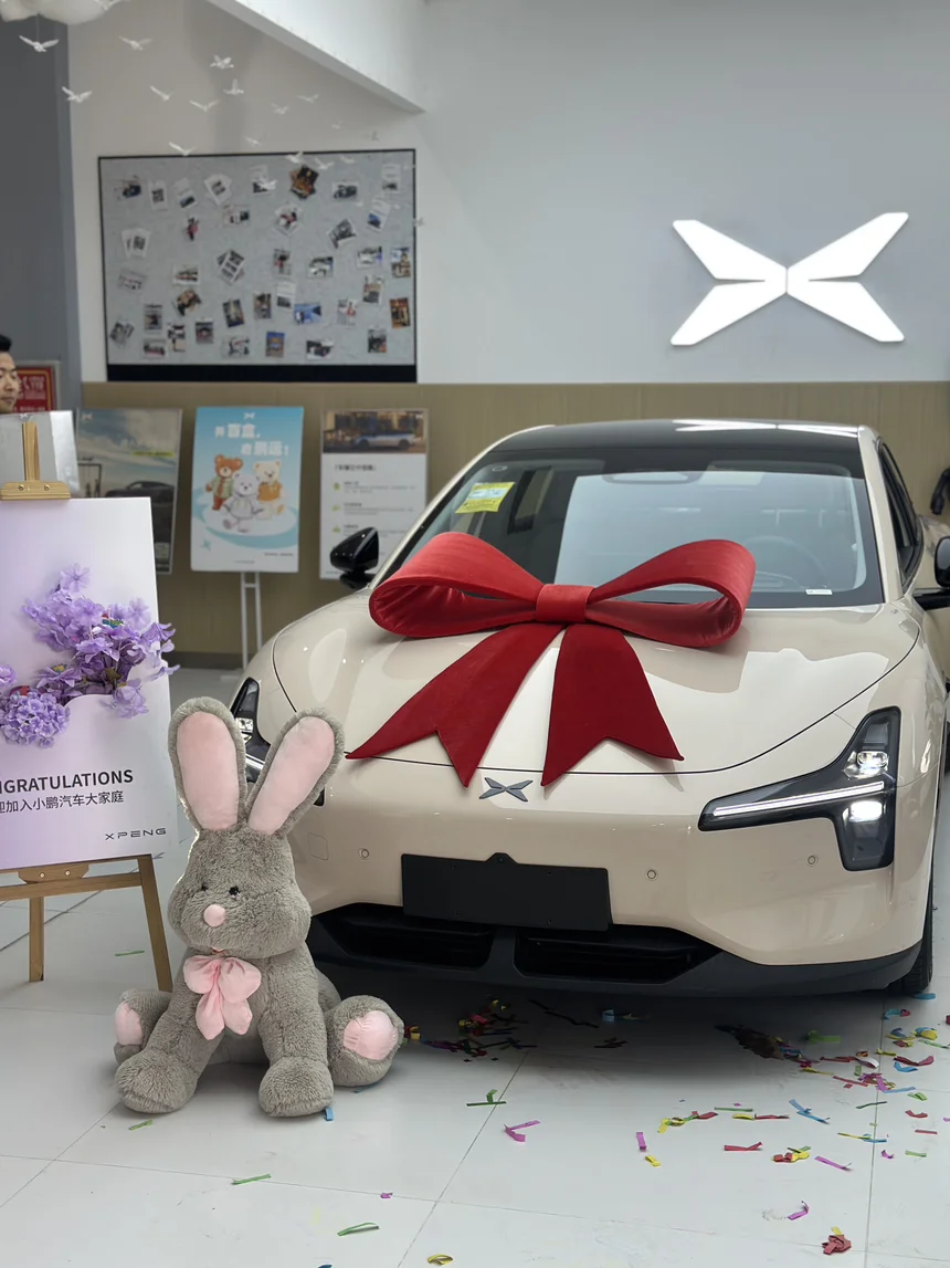 终于等到我的小鹏啦!奶油米车身一眼心动,提车仪式感直接拉满,大蝴蝶结、可爱兔兔玩偶,每一处都戳中我。坐进车里的瞬间,所有期待都变成了现实。从此风雨有归处,奔赴每一场热爱,和我的新“鹏友”一起,开启满是惊喜的出行生活✨
