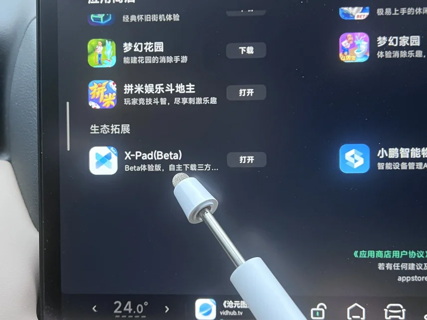 1. 打开小鹏车机应用商店,滑到最底部找到 X-Pad(Beta) 下载安装