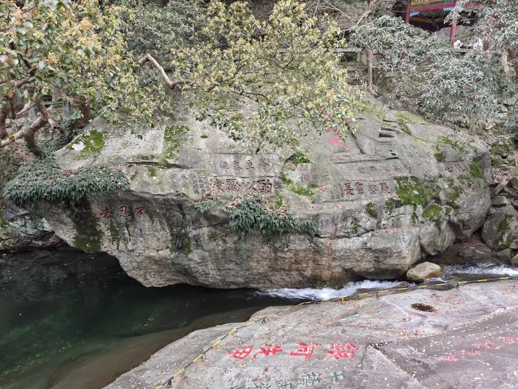 一路沿着山路往上走,两边全是青山绿树,空气特别清新,越往上走,就能越清晰地听到瀑布的水声,心里也越来越期待。秀峰的岩壁上,还有很多历代文人留下的摩崖石刻,每一笔都透着千年文脉,让这山水多了几分厚重感。