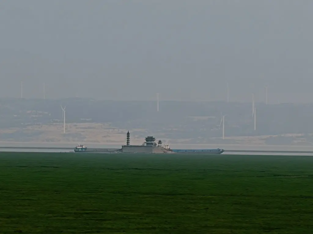 返程的时候,我们特意绕路去了落星墩,算是这次行程的意外收获。三月的鄱阳湖正处于枯水期,原本的湖面,变成了一大片青青草原,落星墩孤零零地立在草原中间,氛围感拉满。
