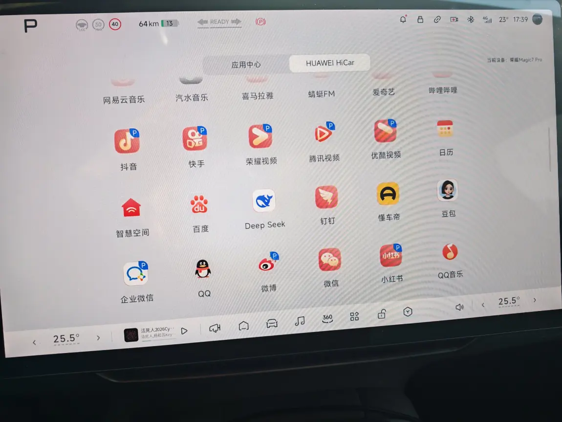 手车互联,车上软件毕竟不能那么全,所以手车互联就显得非常重要,我使用的是荣耀手机,有时想看比赛了,就打开手车互联完美解决,而且荣耀和小鹏的适配不错!