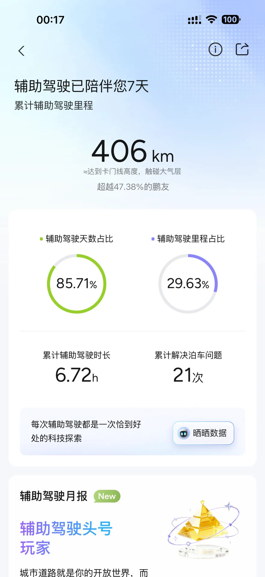 #买小鹏前VS买小鹏后# 我是上个星期五27号提的车,到今天已经行驶了1500公里了,这个表显还是前天拍的,充电才充了210多块钱,相当于一公里才一毛四左右,我直接就是开着车到处玩,到处跑,还买了露营的装备,并且路上可以交给智驾,自己还不用太累,真的很舒服,并且经过我的练习,单踏板都可以玩的好了,动能回收直接最高,我的家人朋友豆硕我开的电车和有车差不多了