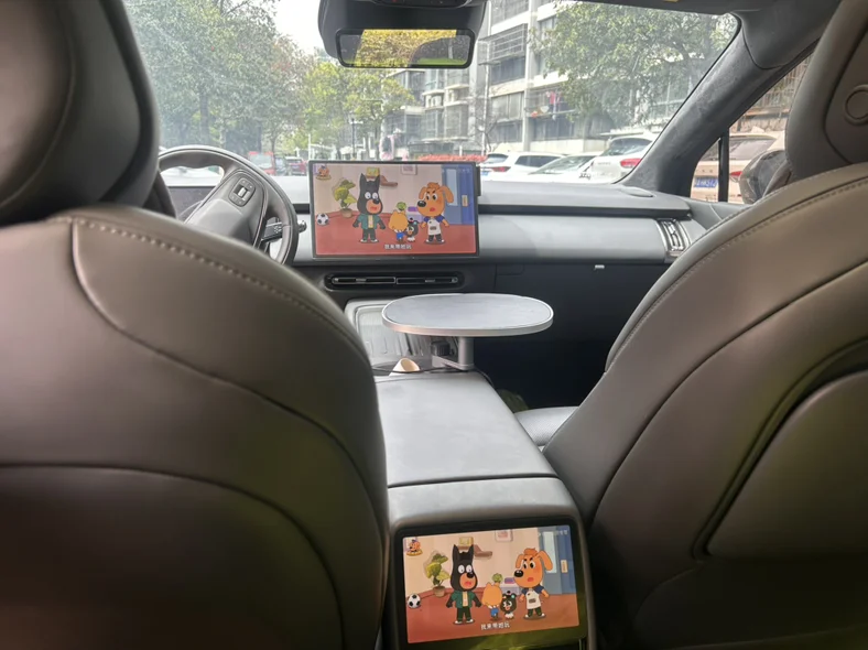 3.后排屏幕不宜长时间观看,让孩子在后座系好安全带,前排中控屏播放。